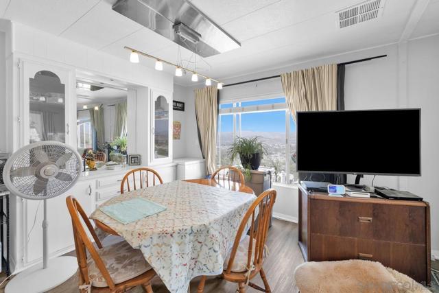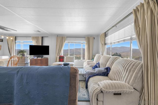 Fantastic Forever Views – Mountains, Hills, Sunrise, Sunsets, Nightlights and Stars! At the top of Mira Vista All Age Mobile Home Park is this Vintage 1392 SF 2 BR 2 BA home with enclosed CA room. Views from the porch, the backyard, the carport, the living room, the dining room, you get the idea! Exterior features a huge wrap around fenced yard, privacy hedges, covered 2+ car parking with room for additional cars, walk in shed, and covered porch. Wood siding, vinyl skirting, capped metal roof with elastomeric coating, central air conditioning and heating system. Interior features huge windows allowing natural light to flood the main living areas, laminate flooring, pendant lighting, family room, with sliding door access to the large enclosed California room. Kitchen features original cabinets, newer cooktop and convection oven. Dining and family room has charming original built in cabinets so plenty of storage. Bedrooms and bathrooms are good size with newer carpet in guest bedroom. Laundry area features a newer washer & dryer, copper plumbing and plenty of storage. This home is perfect for entertaining, or just chillin at the top of the hill. LBB9684