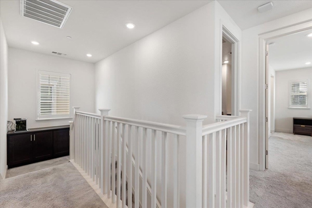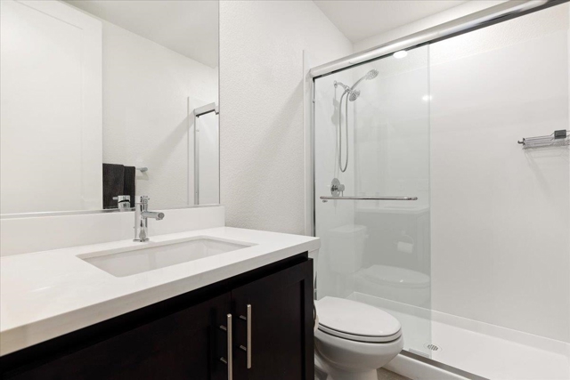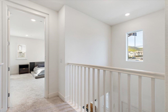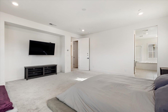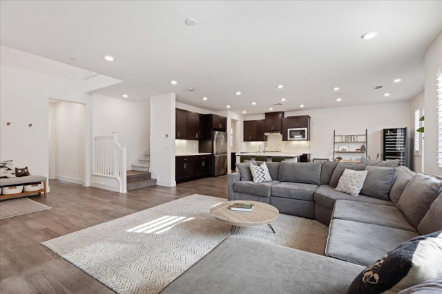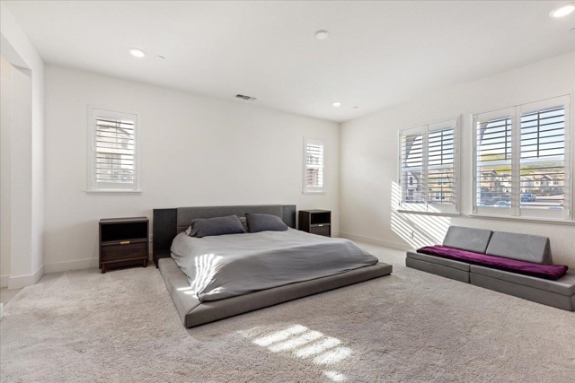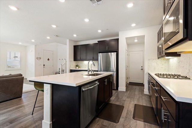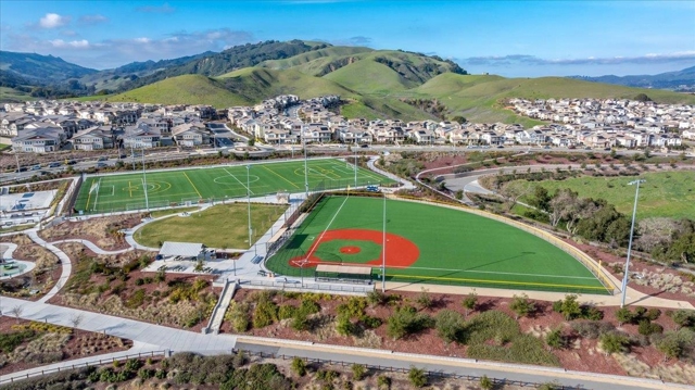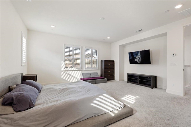Nestled in the sought-after Preserve community of San Ramon, this stunning north-facing home, built in 2019, offers a perfect blend of modern convenience & timeless charm. With 4 bedrooms, 3 full baths, and 2,303 SF of thoughtfully designed living space, this corner-lot gem is brimming with features to love. Step inside to discover high ceilings, recessed lighting, & plantation shutters throughout. Downstairs boasts durable plank flooring and a versatile bedroom, ideal for guests or home office, and a full bath. The chef-inspired kitchen shines w/ stainless steel appliances, walk-in pantry, prep area & center island w/ breakfast bar, perfect for morning coffee or evening conversations. The upstairs primary suite is a serene retreat, complete with spacious walk-in closet & a luxurious bath featuring a soaking tub and separate shower. The laundry room, conveniently located upstairs, features side-by-side washer/dryer and ample storage. This energy-efficient home also includes owned solar panels, a Tesla EV charger, smart thermostat, and keyless entry. Outside, the backyard deck invites you to host BBQs or simply relax. Enjoy HOA amenities like a community pool and clubhouse, plus nearby parks, sports fields, and easy access to I-680 and Crow Canyon Rd. This home is a true standout!