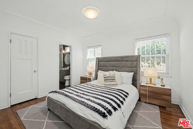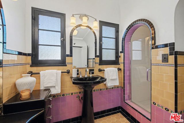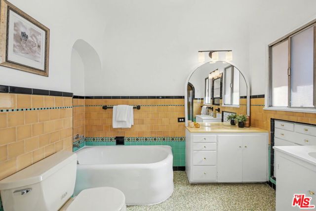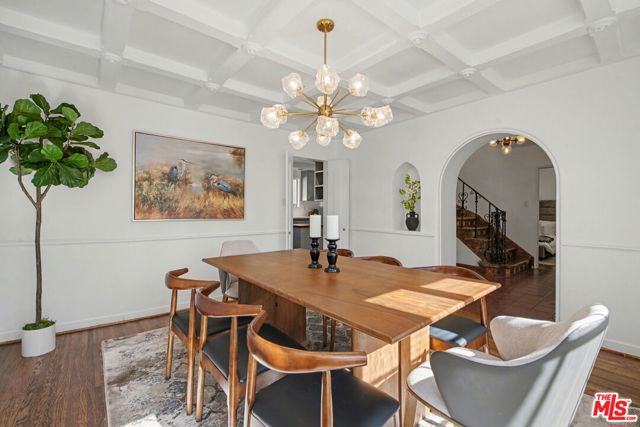 Step into timeless elegance with this stunning 1929 Spanish two-story home, overflowing with original charm. The formal foyer greets you with a sweeping staircase adorned with a wrought-iron railing, a true centerpiece. The living room dazzles with a vaulted ceiling, exposed wood beams, a fireplace, and a breathtaking leaded, stained-glass window. The formal dining room, with its wood-beamed ceiling, is perfect for intimate dinners or lively gatherings. The updated kitchen blends classic style with modern convenience, featuring quartz countertops, stainless steel appliances, and a cozy breakfast nook. Off the kitchen, the family room offers a second fireplace and door to the back yard. There is also one bedroom and full bath on this level. Upstairs, the primary suite is a peaceful retreat with two walk-in closets, a 1920s period-style bathroom, and a separate office. Two additional bedrooms share a beautifully preserved vintage bath. Below, the walk-out basement surprises with a kitchenette and versatile space perfect for a game room or gym with direct access to the backyard, made for enjoying SoCal living. This Spanish gem seamlessly combines historic charm and modern updates. Don't miss your chance to call it home!