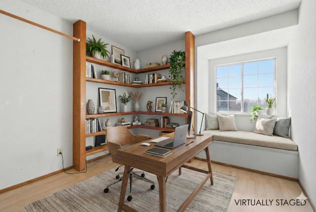 Tucked away in a welcoming, established neighborhood, this 3 bedroom, 2.5 bath home invites you in with a dramatic sense of space. Soaring vaulted ceilings and expansive windows flood the interior with natural light, creating an airy atmosphere that feels both grand and comfortable. The heart of the home is the living room, featuring a classic fireplace and a mirrored accent wall that enhances the open feel. The floor plan flows effortlessly into the dining area and kitchen, which open onto the backyard for easy indoor outdoor living. Upstairs, the home reveals its unique character with spacious bedrooms and charming details, including a built-in bay window seat, the perfect quiet corner for a morning coffee or home office. Outside, the fully fenced backyard offers a peaceful retreat with a patio and mature greenery. While it feels miles away from the hustle, you are just minutes from Gateway Plaza, Costco, and easy freeway access. With its impressive character and highly desirable location, this home represents a fantastic opportunity for the right buyer. It is a canvas waiting for your personal touch to make it shine. Don't miss the chance to secure a property with this much promise!