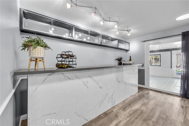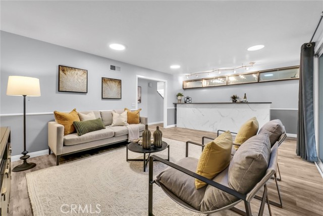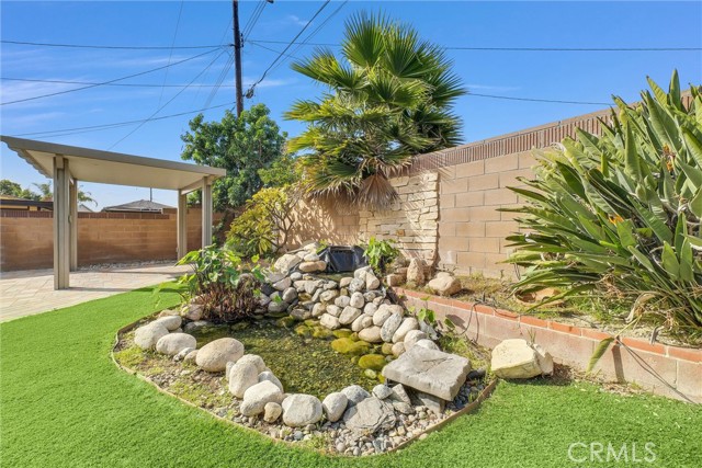 Stunning two-story home showcasing impeccable curb appeal and paid-off solar panels for energy efficiency and long-term savings. The beautifully designed exterior features paver stone driveway, low-maintenance turf landscaping, and a secure front entry with a security door and elegant double-door entrance. Step inside to an exceptionally spacious first floor with an open and versatile layout, perfect for both everyday living and entertaining. The main level includes a welcoming living room with a cozy gas fireplace, a dining area, and a large family room complete with a huge wet bar—ideal for gatherings or easily convertible into a 4th bedroom. Adding even more living space is a massive 443 sq ft sunroom, offering endless possibilities for relaxation, entertaining, or a home office. The gourmet kitchen is a standout, featuring stylish gray cabinetry with ample storage, sleek quartz countertops, a glass mosaic backsplash, electric stove, and a Bosch dishwasher. Throughout the living spaces, enjoy luxury vinyl plank flooring, recessed lighting, and dual-pane windows that enhance comfort and natural light. Upstairs, you’ll find three generously sized bedrooms, including a spacious primary suite with a large closet area and a dedicated makeup vanity. The secondary bedrooms offer ample space and mirrored closet doors for added functionality and style. The backyard is a true private oasis, complete with pavers, turf grass, a mature lemon tree, and a tranquil pond that creates a serene atmosphere. A charming gazebo provides the perfect spot for outdoor entertaining, while a large Suncast shed offers convenient additional storage. The property is fully enclosed with brick walls, providing excellent privacy, security, and sound insulation. Additional highlights include a direct-access two-car garage, central A/C and heating, upgraded electrical panel, newer roof in 2017, rain gutters, Nest thermostat, and an ADT alarm system. Located in a wonderful neighborhood and centrally located between the 405, 91, and 710 freeways. This home truly offers exceptional space, thoughtful upgrades, and comfort throughout—an opportunity you don’t want to miss.