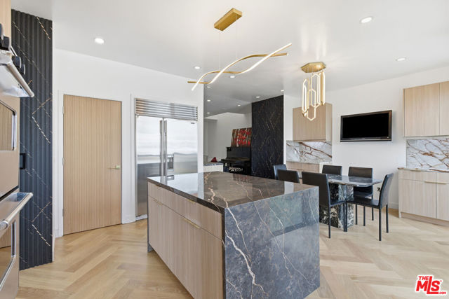 PENTHOUSE CORNER UNIT WITH PANORAMIC CITY VIEWS + PRIVATE ROOFTOP IN A SECURED BOUTIQUE BUILDING Indulge in the ultimate Beverly Hills lifestyle with this extraordinary corner penthouse, a rare offering that combines dramatic panoramic city views, absolute privacy, and an expansive exclusive rooftop deck overlooking the heart of Beverly Hills. Set within a highly secured, upscale building just moments from Rodeo Drive, this one-of-a-kind residence embodies luxury, sophistication, and effortless convenience.Bathed in natural light from its prime corner positioning, the home features soaring ceilings, gleaming hardwood floors, and floor-to-ceiling windows that frame sweeping skyline views from nearly every angle. The open-concept design provides a seamless flow between the formal living room, intimate family room, and elegant dining area, creating an ambiance perfectly suited for upscale entertaining or refined everyday living. A custom-built bar and baby grand piano elevate the atmosphere, while the BRAND NEW renovated gourmet kitchen with a center island and modern, polished appliances transitions beautifully to a private balcony for alfresco moments.Three additional balconies throughout the residence offer serene settings for morning espresso, golden-hour sunsets, or simply taking in the breathtaking views that define this penthouse. A dedicated laundry room, generous closets, and a luxurious walk-in closet add exceptional comfort and functionality. The building itself offers premium amenities including a sparkling pool, rejuvenating sauna, secure key-access elevator, alarm system, and three assigned parking spaces featuring three highly desirable side-by-side garage spots.The show-stopping private rooftop deck is the crown jewel of this magnificent home. Vast, open, and completely private, it delivers unobstructed views stretching across Beverly Hills and beyond an extraordinary outdoor sanctuary ideal for sophisticated entertaining, sunbathing, intimate gatherings, or quiet retreat under the stars.Offered partially furnished or unfurnished (linens, towels, blankets, and kitchen utensils not included), this exceptional penthouse requires a minimum 13-month lease. More than a residence, this is a statement of luxury living at its highest level an unparalleled Beverly Hills experience.