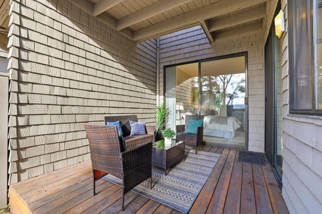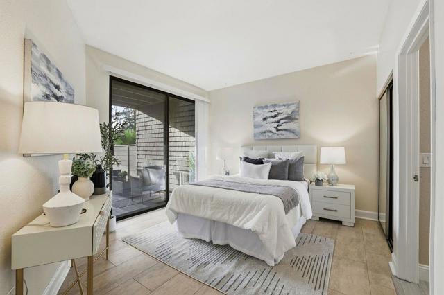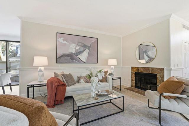 With approximately 964 square feet, this one bedroom, one and one-half bathroom condo offers a spacious layout and abundant natural light. The elegant fireplace in the main livable area creates a warm and inviting atmosphere, while the spacious entryway and elegant lighting fixtures add to the home's refined aesthetic. The neutral color palette provides a blank canvas for personal style and decor. The kitchen is well-appointed, featuring stainless steel appliances and ample cabinetry space for storage. The modern finishes and neutral tones throughout the kitchen contribute to a cohesive and visually pleasing design. The primary bathroom boasts elegant tile work and ample vanity space. Venturing outside, the covered patio and wooden deck provide excellent opportunities for outdoor relaxation and entertainment. The lush landscaping, brick paving, and outdoor pool enhance the overall property's curb appeal and amenities. This updated, bright lower-level home with in-unit laundry is an ideal space for those seeking a comfortable and well-appointed home. Ideally located with easy freeway acces and walking distance to restaurants and shopping, this home combines comfort, functionality, and in unbeatable location.