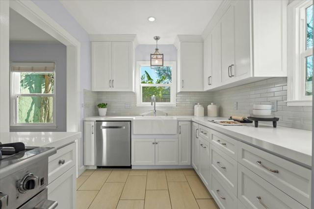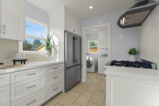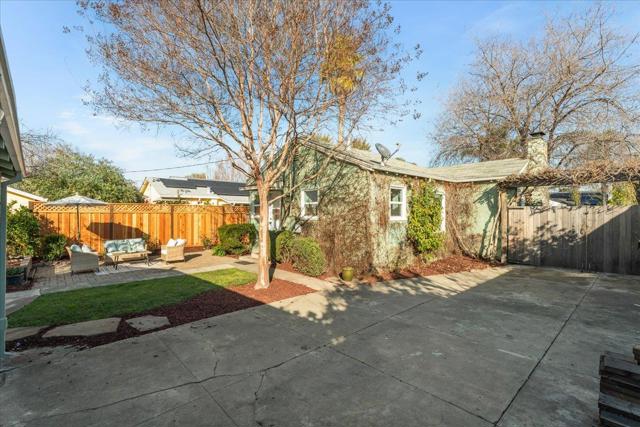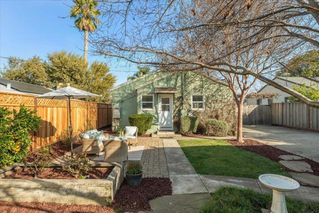 Completely updated 1940s home combining classic character with practical modern improvements in a well-established neighborhood. Light-filled living room features refinished hardwood floors, fireplace, and large windows. Dining room with arched entry is a focal point. Updated kitchen includes stainless steel appliances, gas range, farmhouse sink, ample workspace, and efficient flow between living areas. Bathroom offers tiled finishes with separate tub and shower and pedestal sink. Additional features : inside utility room with washer/dryer and backyard access, recessed and overhead lighting, double-pane windows, and hardwood flooring throughout. low-maintenance California landscaping, paver patio for outdoor dining, mature fruit tree, raised planters, gated driveway perfect for large scale events and detached two-car garage with finished studio space suitable for office, gym, or hobbies. Rear easement provides additional storage or garden potential. Convenient access to commuter routes, shopping, dining, and daily amenities.