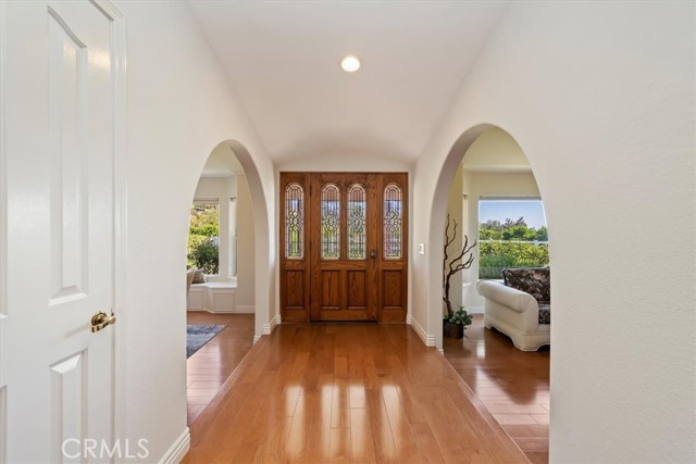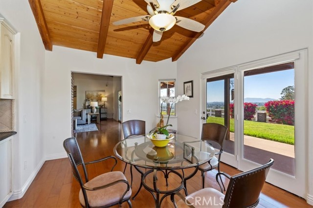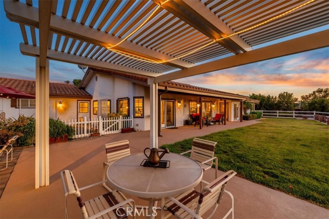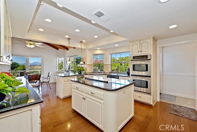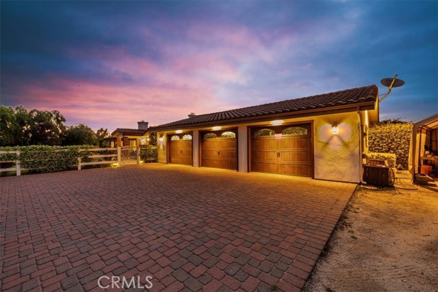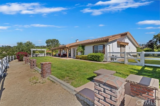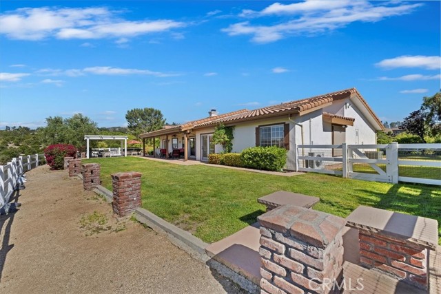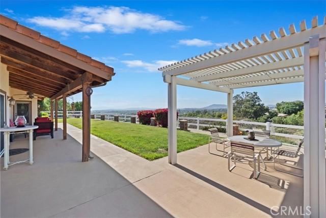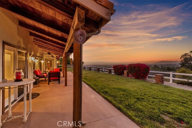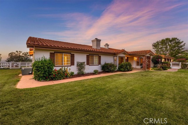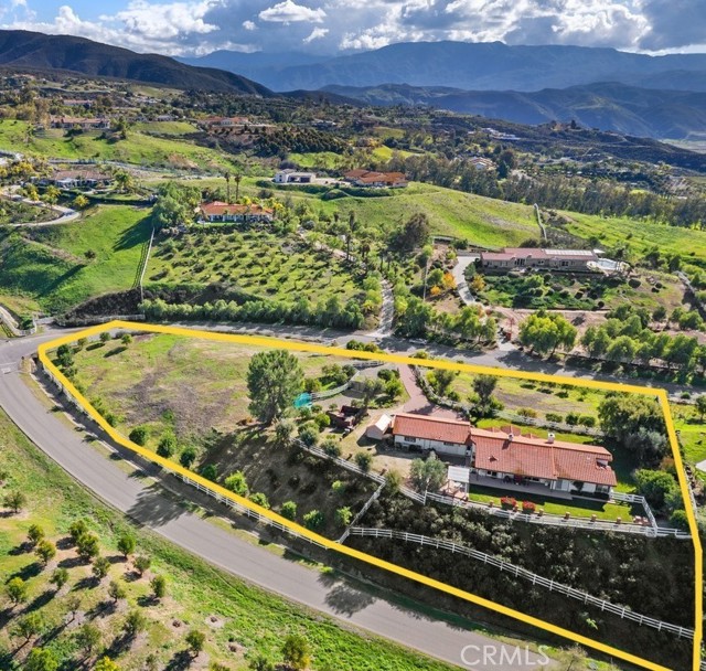 Gorgeous single-story estate offering panoramic 360-degree views of Temecula Wine Country, mountains, city lights, hot air balloons, and breathtaking sunsets. Located in the prestigious community of GlenOak Hills. Perfectly positioned on a prime corner lot, this gated and fully fenced 2.21-acre property combines luxury, privacy, and flexibility. All flat, usable land makes it ideal for building a second unit (ADU) with its own street access. Inside, you’ll find a bright, open floor plan designed for both elegant entertaining and comfortable living. The home features a formal dining room, a spacious living room with a fireplace, and a dramatic family room with a floor-to-ceiling brick fireplace and a custom wet bar. Every room offers sweeping views and the sight of hot-air balloons drifting above the vineyards in the morning. The kitchen showcases hand-finished oak cabinetry, granite countertops, stainless steel appliances including a new refrigerator, a wine cooler, large dining nook, and a walk-in pantry. Hickory hardwood flooring adds warmth and sophistication throughout the main living areas. The primary suite is a private retreat with French doors opening to the patio and Wine Country views. The spa-style bathroom features a soaking tub, travertine finishes, and a generous walk-in closet. Secondary bathrooms are equally luxurious, featuring travertine tile, designer glass enclosures, and granite countertops. Freshly painted and beautifully maintained. Outside, the possibilities are endless. The flat, fully usable land is ideal for an ADU, pool, vineyard, and horses. Multiple gated access points and RV hookups with 50-amp power provide exceptional flexibility. The oversized 3-car garage, which has one finished bay with vinyl flooring, cabinetry, and A/C, is perfect for a home gym or office and can be easily converted to a Junior Dwelling Unit with its own entrance. Enjoy mature fruit trees, low HOA fees, and a low property tax area. GlenOak Hills offers two tennis courts, a clubhouse, horse arena, and children’s playground. Minutes from Temecula’s finest wineries along the De Portola Wine Trail, including Leoness, Altisima, Fazeli, and Renzoni. A rare combination of views, usability, and luxury. Must see.