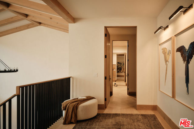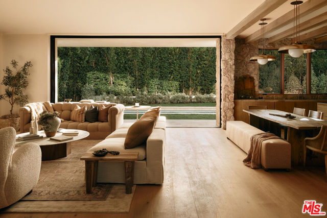 JVE Development Group and Jae Omar present Villa Antica, a newly built architectural residence in Brentwood, designed to evoke the feeling that it has stood gracefully in place for generations. Rooted in classical European influence and realized through a contemporary lens, the home is defined by natural materials, measured lines, and artisan craftsmanship. Offering an uncommon sense of privacy and scale, the residence spans five-bedrooms, six-bathrooms, and sits on a generous 9,618-square-foot parcel. A dramatic double-height entry sets the tone, unfolding into a series of thoughtfully composed living spaces crafted for both daily life and elevated entertaining. Interiors are filled with warm natural light and layered with textured woods, rough-hewn stone, and bespoke millwork. Reclaimed beams over 200 years old bring authenticity and depth, while leathered travertine and brass detailing reinforce a tactile richness. Sculptural lighting design creates a curated ambiance in the expansive great room, which flows effortlessly to the lush backyard through a wall of disappearing glass. At the heart of the home, the kitchen draws inspiration from the French countryside, blending beauty and utility with premium built-in appliances, a substantial center island, oak cabinetry, and a walk-in pantry. The kitchen opens to a sophisticated family room set around a floor-to-ceiling fireplace, while the adjacent dining room is complemented by a custom wet bar. Additional amenities include a glass-enclosed executive office, an immersive home theater, and a distinctive powder room featuring a 1920s French marble sink -- subtly reinforcing the home's collected, old-world narrative. Ascend the floating staircase to the primary suite with a private terrace overlooking the manicured grounds. Vaulted ceilings and a two-way stone fireplace frame this serene retreat that includes a wet bar, boutique dressing room, and luxurious bath. Four additional en-suite bedrooms, with one on the main level, complete the home. Fully integrated Control4 Home Automation System, surround sound, and security cameras facilitate contemporary connectivity and functionality while remaining discreetly in the background. Meticulous landscaping design by Double Green Landscapes extends the home's sense of permanence outdoors while providing privacy, ample space for gathering, and seamless incorporation of resort-like amenities. The tranquil backyard setting is secluded by mature hedging and features a pool and spa with automatic cover, a fully equipped outdoor kitchen, firepit, and multiple areas to lounge or dine alfresco. Ideally located in Brentwood, Villa Antica is a rare architectural offering where old-world influence and modern design converge in a home that feels both new and enduring.