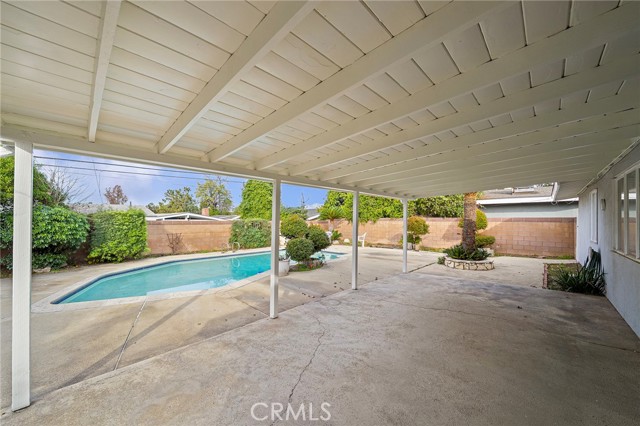Welcome to a well-maintained single-story home offering classic charm and indoor-outdoor living in a desirable Covina neighborhood. This 3-bedroom, 2-bathroom residence features a spacious and inviting layout ideal for everyday comfort and entertainment. The bright living room showcases vaulted ceilings, a brick fireplace with raised hearth, and large sliding glass doors that open directly to the backyard, filling the space with natural light. New carpeting and interior paint provide clean lines and provide a blank canvas ready for your personal style. The kitchen offers generous cabinetry, ample counter space, tiled flooring, and built-in appliances, with an adjacent dining area perfect for casual meals or gatherings. Each bedroom is comfortably sized. Step outside to a private backyard retreat featuring a covered patio and a sparkling in-ground swimming pool—ideal for relaxing, entertaining, or enjoying warm Southern California days. The backyard is enclosed for privacy and offers plenty of space for outdoor seating and lounging. Additional features include an attached two-car garage, a wide driveway, and a functional layout with great potential. Conveniently located near schools, shopping, dining, and parks, this home presents a wonderful opportunity to create your ideal Covina lifestyle.