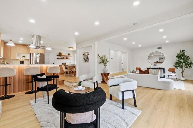 Modern masterpiece nestled along the Santa Teresa Foothills of South San Jose, featuring a fully permitted, complete renovation w/ thoughtfully curated design & quality craftsmanship throughout. Restored brickwork & a sun-filled front porch welcome you into an expansive open-concept layout connecting the living room, family room, wood-burning fireplace, kitchen & dining area. Illuminated by recessed lighting & a distinctive halo lighting feature. The beautifully updated kitchen offers extended cabinetry & countertops, a dedicated beer/wine refrigerator, brand-new LG appliances & peninsula-style seating w/ pendant lighting, ideal for gatherings. Both living & family rooms provide rare direct backyard access w/ exterior doors & window screens, creating seamless indoor-outdoor flow. The fully renovated backyard features 400 sqft of newly poured concrete, fresh sod, a brand-new fence & a paver walkway, perfect for entertaining. The primary suite includes a custom walk-in closet & a modern, unique design bathroom with waterfall shower, while the main bathroom offers a spa-inspired full shower and tub. Both bathrooms offer extensive custom lighting along the ceiling and showers. Brand new Furnace & AC. Rare to find a home of this magnitude, carefully designed by Broker/Owner.