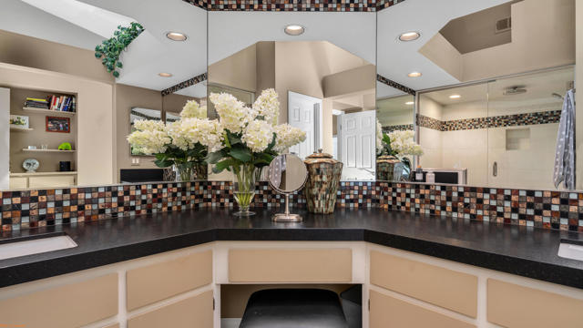 As soon as you enter this fabulous single story Villa, you'll be captured by the amazing golf course and mountain views...one of Desert Falls premier locations...tastefully remodeled with great attention to details...expansive, open floor plan, beautifully appointed baths and nice separation between the two bedrooms for privacy...Whether it's enjoying a friendly game of pickleball, a round of golf on the world class links championship course, a splash in the nearby pool, or a yoga class at the fitness center...all this and more can be enjoyed without ever leaving your home...Conveniently located to fine dining and shopping at El Paseo, the Acrisure Arena and the soon to be completed Surf park at Desert Willow...Everything is included in this home to start enjoying the desert lifestyle at its finest...