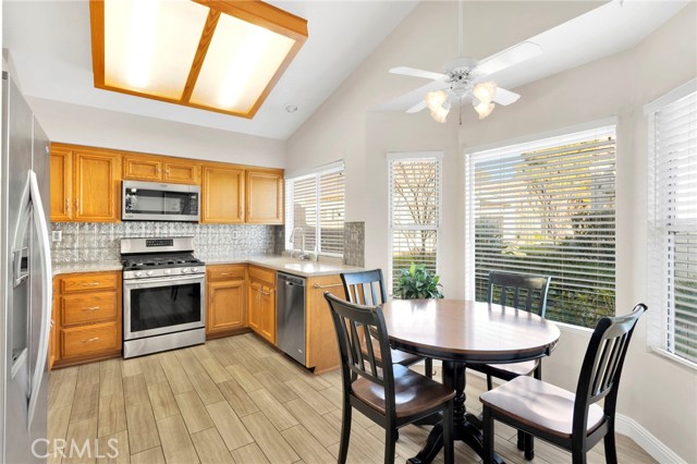 This Well-maintained 1,332 sq. ft. home built in 1994, is located in the desirable Jess Ranch community of Apple Valley. This home features front and back patios, upgraded baseboards throughout, custom Levelor blinds and drapes, and updated light fixtures. All appliances are included, offering true move-in convenience. The fully finished garage includes epoxy floors and ample storage. Attractive landscaping enhances both curb appeal and outdoor enjoyment. Community amenities include a brand-new clubhouse completed in 2025, featuring a pool, jacuzzi, gym, library, and scenic walking paths. A wonderful opportunity to enjoy comfort, convenience, and an active lifestyle in a well-established community.