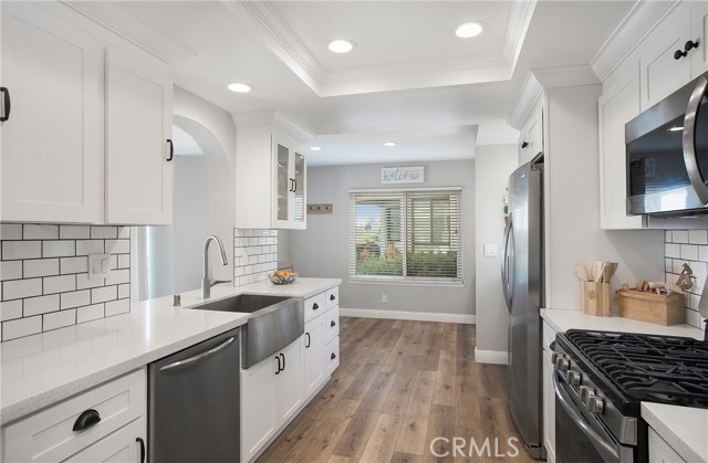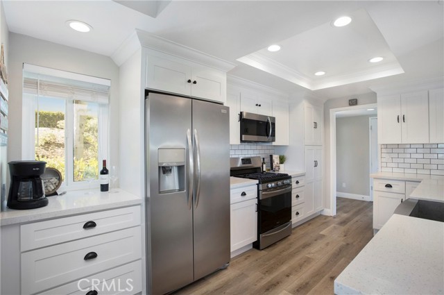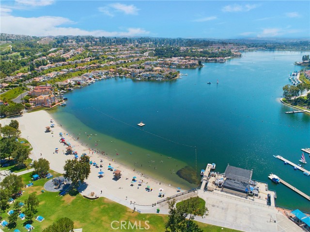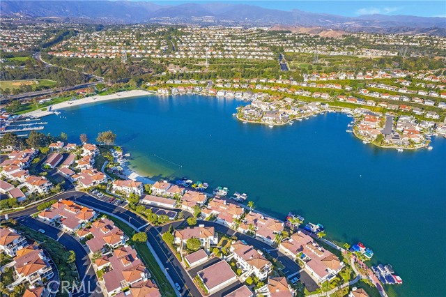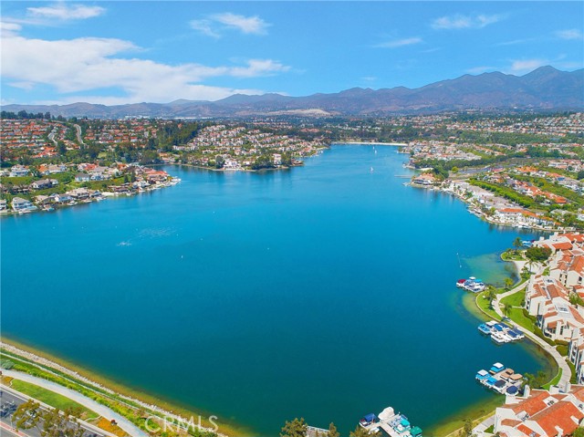 From the moment you step inside you are greeted with panoramic lake and mountain views. Located in one of Mission Viejo’s most sought-after guard-gated lakefront communities, this stunning home is perched on a quiet cul-de-sac offering unobstructed views of Lake MV, Saddleback Mountains and breathtaking sunsets. Spacious open floorplan seamlessly connects the living areas with walls of glass opening to a private patio surrounded by greenbelts—creating an ideal backdrop for indoor-outdoor living and entertaining. The home has been remodeled with no expense spared, including new dual-pane windows and sliding doors that flood the interior with natural light. Living room features remodeled fireplace with custom mantel complemented by luxury vinyl flooring throughout the main living areas. The fully renovated kitchen features quartz countertops, designer backsplash, soft-close cabinetry, Gallery stainless steel appliances and charming nook perfect for casual dining, home office or flexible living space. Primary suite is a private sanctuary where you’ll wake up to peaceful lake views and offers expansive closet space with custom organizers, spa-inspired bath showcasing walk-in shower, soft-close dual vanities, quartz countertops, brushed hardware, designer mirrors and lighting. Secondary bath is equally impressive with walk-in shower accented with pebble detail, new vanity and abundant natural light. Even the linen area has been thoughtfully redesigned with floor-to-ceiling custom cabinetry. Enjoy the convenience of a 2-car garage with new smart opener just steps from your private entry. Additional upgrades include new panel doors and hardware, cabinet pull outs, upgraded baseboards, updated electrical, recessed LED lighting, new light fixtures, ceiling fans, washer, dryer and refrigerator included. Bonus opportunity: Electra Craft “Duffy style” boat may be offered for sale after close of escrow. Residents enjoy lake living in a 24/7 guard-gated setting, private beaches, 2 pools, spas, scenic walking trails and Lake MV amenities including boat rentals, sailing club, paddleboarding, kayak slips and storage, playground, summer concert series, fireworks and year-round events. Walk to nearby gym, restaurants and everyday conveniences. Private boat docks are available to residents at low monthly rates. This is more than a home—it’s a lifestyle with effortless access to the water and tranquility defined by lake, mountain, sunset, city light views and effortless luxury