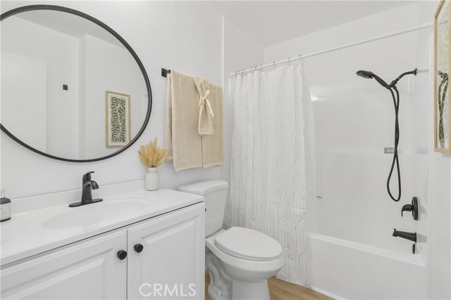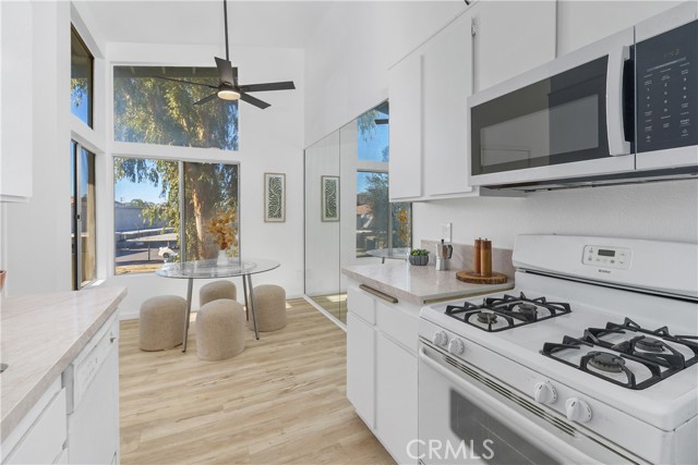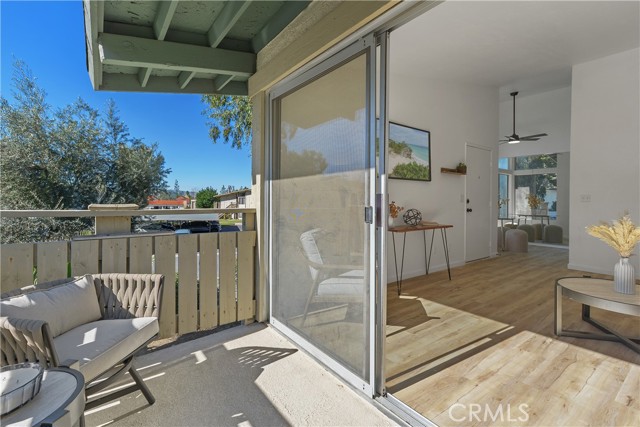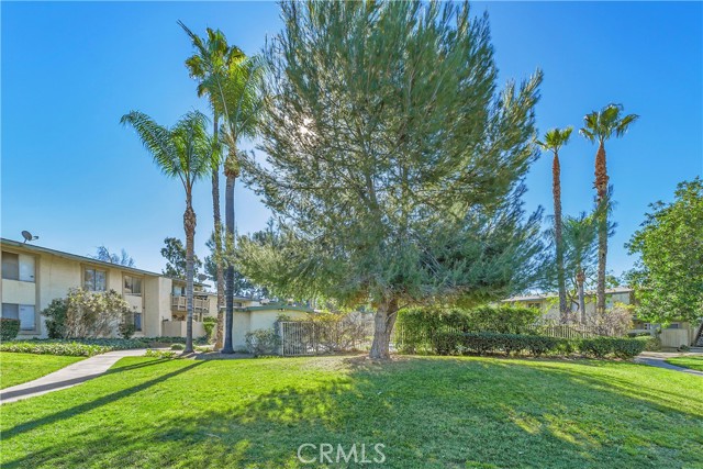 Welcome to this beautifully remodeled 1-bedroom condo located in the desirable, gated community of Country Wood Estates. A private upper-level entrance opens to a spacious, light-filled living room featuring vaulted ceilings, new laminate flooring, and fresh interior paint. The living area flows seamlessly to a private patio offering serene tree and hill views. The updated kitchen showcases painted cabinetry, Taj Mahal quartz countertops, a new sink and faucet, and updated chandelier lighting. Adjacent to the kitchen is a generously sized dining area with floor-to-ceiling windows, providing abundant natural light. The remodeled bathroom includes a new vanity, updated lighting and mirror, a reglazed bathtub enclosure, and new shower fixtures. The bedroom is well-sized with vaulted ceilings, peaceful views of trees and hills, and a large walk-in closet. Additional features include in-unit laundry, a designated covered parking space, and extra storage located on the balcony. The community is well maintained with mature landscaping, greenbelts, and a pool. Conveniently located near Loma Linda University Medical Center, local schools, and shopping