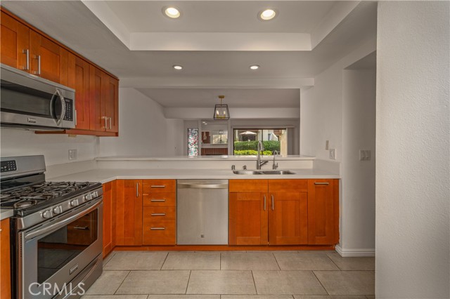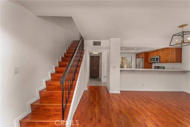 Welcome to this charming 2-bedroom, 2.5-bath, two-story townhouse, located in the resort-style community of Warner Woodlands II in prime Woodland Hills. The entry level features tile flooring, a clean open feel, and a modern kitchen with sleek cabinetry, stainless steel appliances, recessed lighting, and an inviting flow into the main living space. The light-filled living area showcases warm wood flooring, a gas fireplace, and opens to a private patio, perfect for al-fresco dining and enjoying Southern California’s year-round weather. Upstairs, the primary bedroom offers excellent closet space and a private balcony overlooking the beautifully maintained community. The secondary bedroom is generously sized and versatile for guests or a home office. Conveniently located between the bedrooms is an in-unit stacked laundry area, providing easy access and everyday functionality. Additional features include a private two-car garage. The community offers desirable amenities, including a pool and spa, tennis courts, lush landscaping, walking paths, and peaceful meandering streams with fish and visiting ducks, creating a serene, park-like setting. Ideally located with easy access to the 101 Freeway and just minutes from Westfield Topanga, The Village, Costco, and a wide variety of restaurants, cafés, and entertainment. A rare opportunity to lease a townhouse in one of Woodland Hills’ most desirable communities.