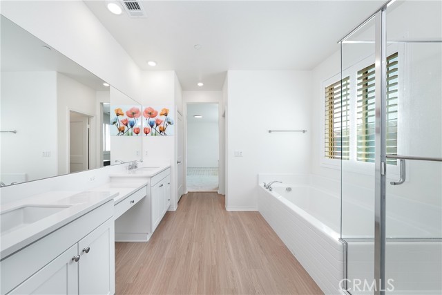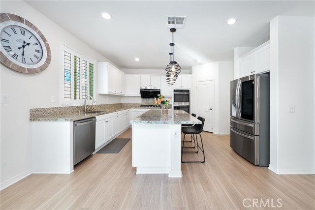 Built in 2021 by Lennar, this beautifully upgraded home is located in the desirable Park Lane community, just minutes from Costco, shopping, dining, and with easy access to Highways 60 & 15. Featuring an open-concept layout, the home is bright and functional with a stylish fireplace in the main living area. The upgraded kitchen offers white cabinetry, cooktop, upgraded range hood, double ovens, and a built-in water filtration system. A whole-house water softener system adds everyday comfort. The first-floor bedroom and full bathroom provide ideal flexibility for guests or multi-generational living. Upstairs includes a spacious loft and a primary suite with a walk-in closet. Additional highlights include solar panels for energy efficiency, a protective mesh safety screen, and fully finished front and backyard landscaping designed for easy maintenance. Move-in ready, low maintenance, and very competitively priced—an excellent opportunity in a sought-after neighborhood.