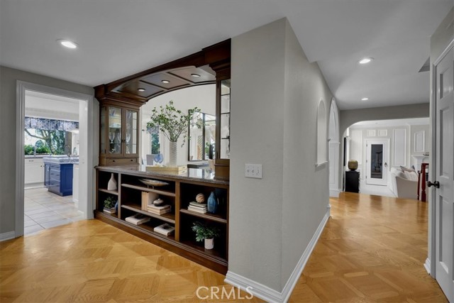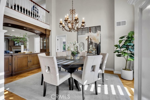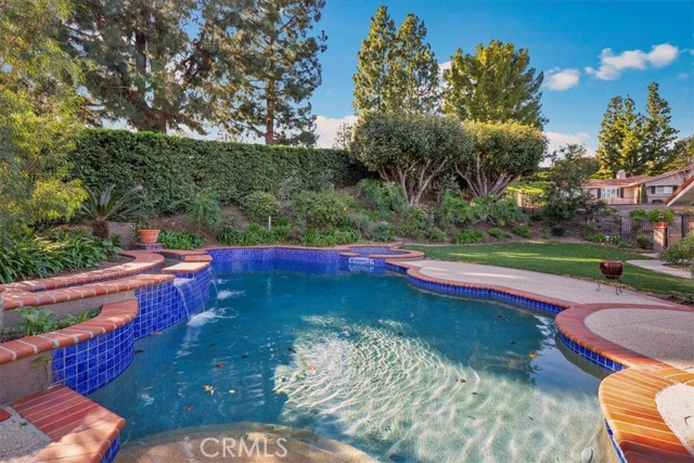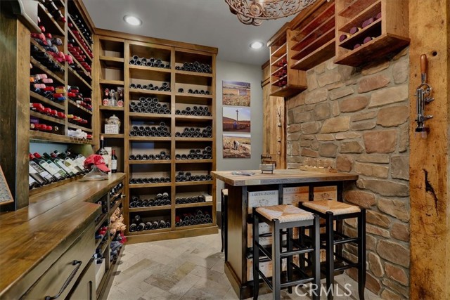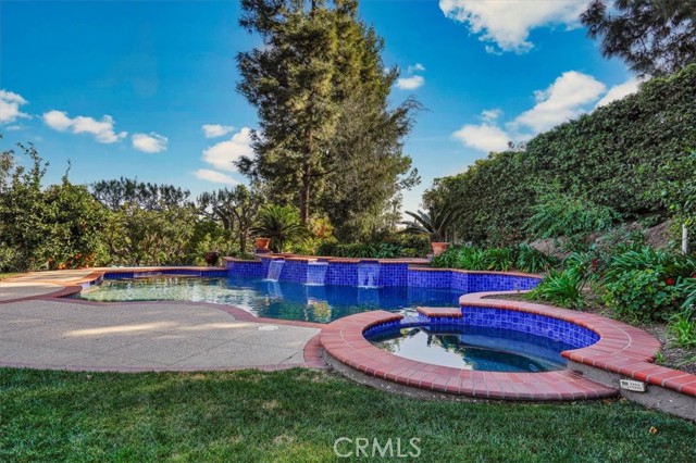 An extraordinary custom estate home in the heart of prestigious Lemon Heights, North Tustin; this one-of-a-kind residence blends refined elegance with Southern California living. Offering five bedrooms and three bathrooms, including a main-level bedroom, the home is thoughtfully designed for both everyday comfort, indoor-outdoor living and elevated entertainment. A grand foyer sets the tone for this elegant home leading into the formal living room and dining room which is crowned by dramatic 16-foot ceilings. Seamlessly flowing from the dining room, at the center of the home, the chef’s kitchen impresses with a statement island, built-in oversized refrigerator, a professional Dacor gas range and dining nook. A truly unique showpiece, the custom-built 170-square-foot, temperature-controlled wine cellar accommodates approximately 2,500 bottles, creating a striking focal point for collectors and entertainers alike. A private sanctuary, the primary suite features sweeping views of Saddleback Mountain and surrounding rolling hills, a spa-inspired ensuite with a spa tub, and a large custom walk-in closet. The primary suite deck becomes the perfect setting to watch the sunrise and enjoy the chirping birds and morning coffee. Set on a generous cul-de-sac lot, the grounds of this home are designed for effortless indoor-outdoor living. Lush landscaping surrounds the amenity-rich pool and spa with a waterfall feature, while an expansive pergola wraps around the back of the home that offers multiple vignettes for alfresco dining and relaxation. The outdoor kitchen includes a built-in barbecue, separate burner, refrigerator, and bar seating for four. Additional highlights include custom built-in cabinetry throughout, extensive storage, a three-car garage with attic storage and pull-down access, ample guest parking, and room for a potential ADU. This home resides in the Tustin Unified School District including Foothill High, Hewes Intermediate and Arroyo Schools, all highly sought-after and known for distinguished, high academic performance and student support services. This exceptional Country Ridge Home nestled in the Tustin Foothills offers privacy, craftsmanship, and an elevated lifestyle—a rare opportunity in one of North Tustin’s most coveted neighborhoods.