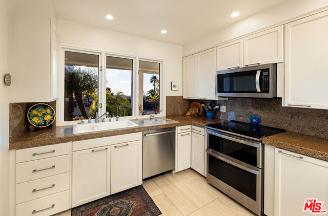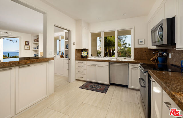 Perched on Santa Barbara's Riviera, this refined single-level residence enjoys commanding views that sweep across the city, the Harbor, and the Channel Islands beyond. The setting is defined by light and perspectivesunrises that gently illuminate the coastline and sunsets that settle into glowing evening skies. At the center of the home, the living room unfolds as a welcoming gathering space, anchored by a fireplace and accented by travertine floors, custom built-in cabinetry, and tailored bookcases. Sliding glass doors extend the room to both the front and rear patios, creating a seamless indoor-outdoor flow. The rear patio provides a serene, garden-oriented escape, while the covered front patio serves as an inviting extension of the main living area.Designed for everyday enjoyment and entertaining alike, the front patio features its own fireplace and wet bar, making it ideal for morning coffee, afternoon gatherings, or relaxed evenings. The living and dining areas flow naturally from this central space, creating a cohesive layout that feels open yet inviting. The kitchen is thoughtfully appointed with rich granite countertops, reverse osmosis filtration, and solar-coated windows that enhance comfort and light throughout the kitchen and dining areas. The primary suite and guest bedroom are beautifully light-filled and thoughtfully positioned, each complemented by updated bathrooms finished in a modern aesthetic. Mature landscaping and terraced garden areas surround the home, offering privacy and a lush, calming backdrop. A rare combination of single-level living, thoughtful updates, and timeless Riviera appeal, this residence reflects a lifestyle of ease, elegance, and enduring quality.