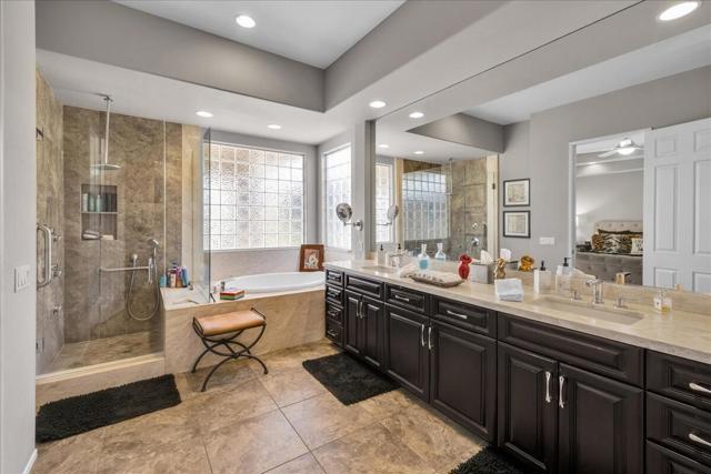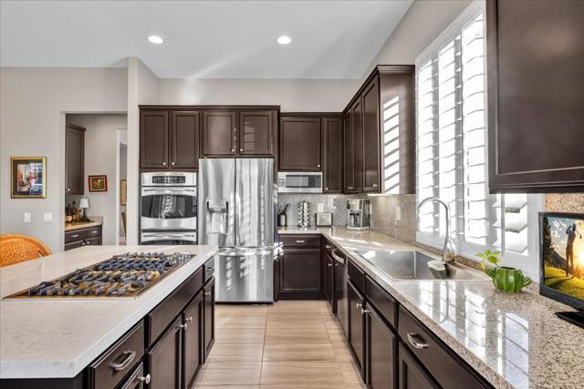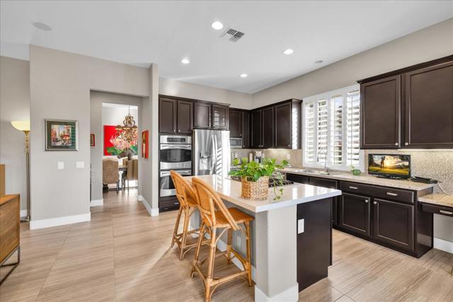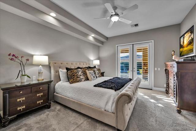 Discover an exceptional, move in ready, newer, single level home. Your own desert oasis at Sandpiper, located in one of Palm Desert's most desirable non-gated communities just off West Hovley. FOUR bedrooms 3.5 bathrooms, including a private detached casita! Conveniently located close to shopping, schools, medical facilities and an array of golf courses to play! Your own private enclave behind courtyard gates, with no HOAs. Picturesque mountain views with ultimate privacy on a quiet cul-de-sac. Open, spacious floor plan with high ceilings, light & contemporary custom tile floors throughout. Luxurious pool & spa with expansive shade cover across full-length of the home, BBQ area--privacy walls & low maintenance desert plantings add to the outdoor appeal. Gourmet kitchen with stainless appliances, tons of countertop & cabinetry space. Oversized floor tile. Split bedroom plan with privacy for all. And large office with walk-in closet. Primary suite with spa-like bath. Enjoy the gorgeous interior, lounge poolside, entertain, stargaze--this is the IDEAL close-to-town property to call HOME! 2-car attached garage with additional storage. Very efficient leased solar system. Centrally located, mere minutes from all the attractions: College of the Desert, hiking trails, CV link, casinos, shopping and dining along El Paseo, are all just minutes away