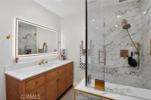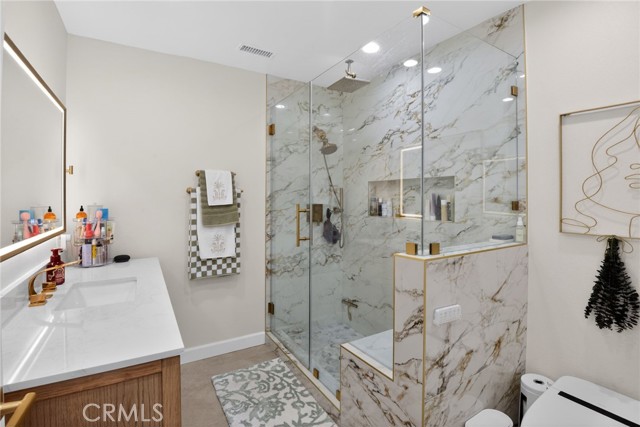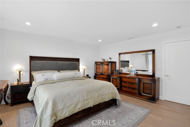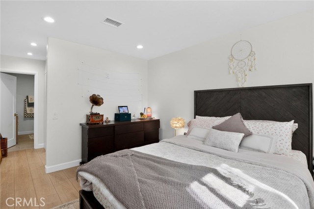 Welcome to this fully remodeled, turn key 3 bedroom, 3 bath home, thoughtfully upgraded from top to bottom and ready for immediate move-in. This home features two expansive primary suites, each with its own attached bathroom and walk-in closet, offering exceptional flexibility for multi-generational living, guests, or a private home office setup. All bedrooms include walk-in closets, with a custom upgraded closet in the second bedroom. The interior showcases new tile and vinyl flooring, fresh designer paint, modern interior doors, and premium hardware throughout. A completely renovated kitchen anchors the home with custom cabinetry, new countertops, and brand new Samsung Bespoke energy efficient appliances, perfect for both everyday living and entertaining. Every bathroom has been reimagined with spa style finishes, modern vanities, designer fixtures, and latest automatic smart toilets, delivering a true luxury experience. Major system upgrades provide peace of mind, including a new roof, energy efficient Paid Off solar system, upgraded and new plumbing throughout, new sewer lines, a new main plumbing line, upgraded electrical panels, and new AC ducting for improved airflow and comfort. Modern recessed lighting, dimmable switches, and sensor lights enhance both ambiance and efficiency. Outside, enjoy a fully designed front and backyard complete with a pergola, new outdoor lighting for curb appeal and security, and new side exterior doors creating a seamless indoor outdoor lifestyle. Attached garage, 2 spots in the driveway and ample street parking available. This is a rare opportunity to own a beautifully upgraded home where style, comfort, and functionality come together effortlessly. Centrally located near shopping, restaurants & entertainment. Just minutes from down town LA and LAX airport.