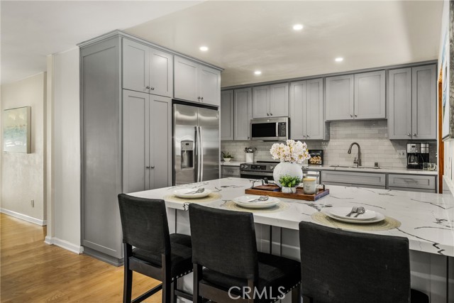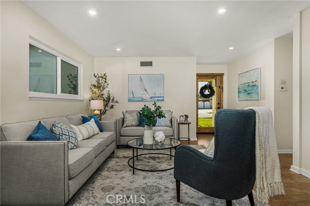 This beautifully refreshed single-level home is situated on a quiet cul-de-sac in the highly desirable Seahaven neighborhood of South Huntington Beach, offering the perfect blend of coastal lifestyle, comfort, and modern design. With no interior steps, this thoughtfully designed layout provides effortless single-level living. Approximately 1.5 miles from world-class beaches, the bright open floor plan enhanced by a high-ceiling addition creates an airy, inviting atmosphere ideal for everyday living and entertaining. The heart of the home is the fully renovated designer kitchen, featuring quartz countertops, custom-made cabinetry, brand-new stainless-steel appliances, recessed (halo) lighting, and a spacious breakfast bar / peninsula perfect for casual dining and gathering. Wide-plank luxury vinyl flooring, abundant recessed lighting throughout the living and dining areas, and dual-pane insulated vinyl sliding windows fill the home with natural light and contemporary elegance. A versatile bonus room with a cozy fireplace and extensive built-in cabinetry offers exceptional flexibility — ideal for a family lounge, home office, media room, or creative space — while providing seamless access to the backyard for indoor-outdoor living. Thoughtful upgrades include ceiling fans with integrated lighting in all bedrooms, front and backyard irrigation systems, rain gutters, along with roof and HVAC system maintenance, delivering comfort, efficiency, and peace of mind. The private backyard is perfect for morning coffee, weekend barbecues, and relaxed evenings under the coastal sky. Ideally located near top-rated schools, scenic parks, shopping, dining, and coastal trails, this move-in-ready home captures the very best of Huntington Beach living.