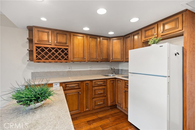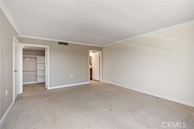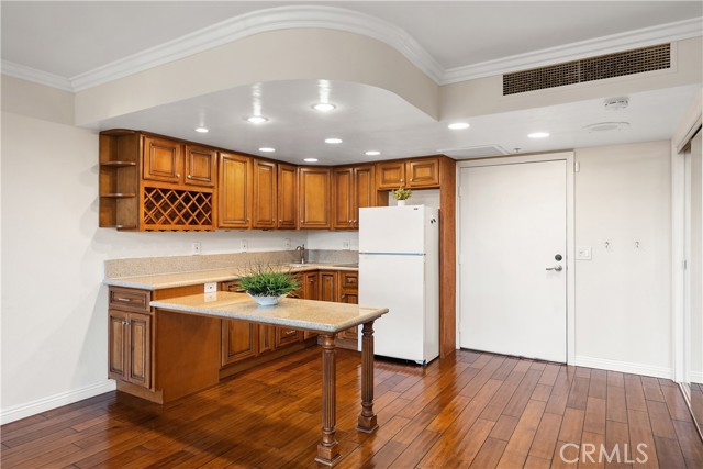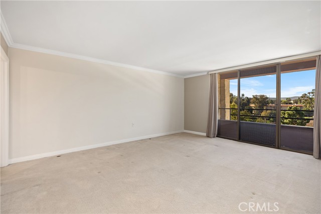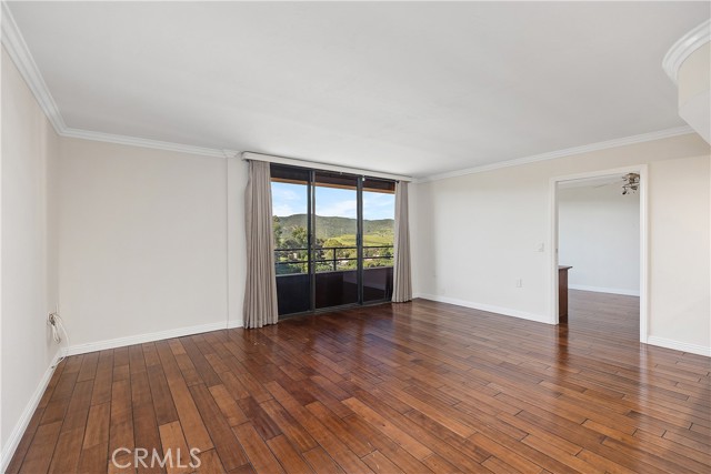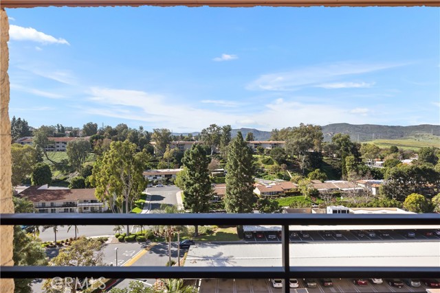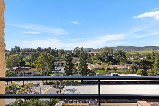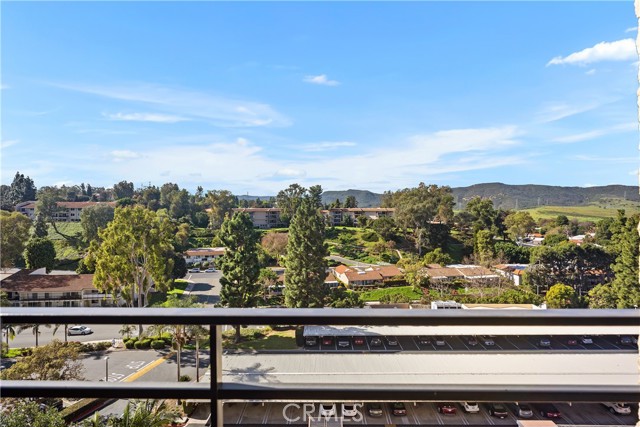 Immaculate and move-in-ready End unit condo in the Laguna Woods Towers with panoramic hill and neighborhood views. Updated home is light and bright. This 2-bedroom, 2-bathroom unit offers a spacious living and dining area with floor to ceiling sliding doors that open to a long, covered Juliet style balcony, perfect for enjoying fresh air and the scenery. The open kitchen features abundant wood cabinetry, granite counters, a breakfast bar peninsula, built in wine rack, and recessed lighting. The primary suite enjoys the views and includes a walk-in closet with built-in shelving and a private bathroom with updated granite vanity. The second bedroom also has slider access that opens to the balcony and includes a full wall built-in desk and cabinetry, ideal for a home office, hobby room, or guest space. There is a guest bathroom with step in shower and grab bars. Crown molding, smooth ceilings, Engineered wood flooring in the main living areas, and abundant storage complete the home. The Towers monthly assessment includes a $500 monthly dining credit for meals in the Crystal Dining Room or Cafe Latitude 50, housekeeping visits every two weeks, utilities, cable TV, free laundry facilities, 24-hour desk services, 24-hour onsite maintenance, and many activities, along with shared outdoor patios. Shuttle bus service arrives at the front door and can take you throughout the community and local shopping. As a Laguna Woods Village resident you will also be able to enjoy activities at 7 clubhouses, 5 swimming pools, private community golf courses (27 hole championship course and 9-hole par executive courses), tennis courts, lawn bowling greens, shuffleboard courts, craft and hobby workshops, garden centers, game rooms, billiard rooms, gym, horse stables, a very active theater and arts community, and library. Over 200 social clubs to join. This is all within a beautifully landscaped, gate guarded golf community convenient to freeways, shopping, restaurants, outstanding medical facilities and of course, the beach.