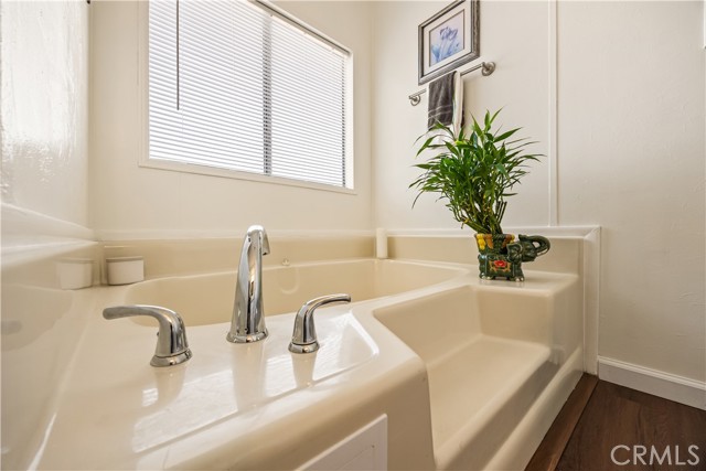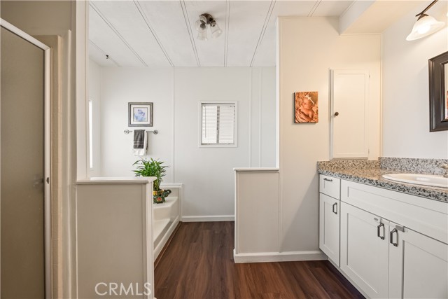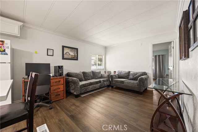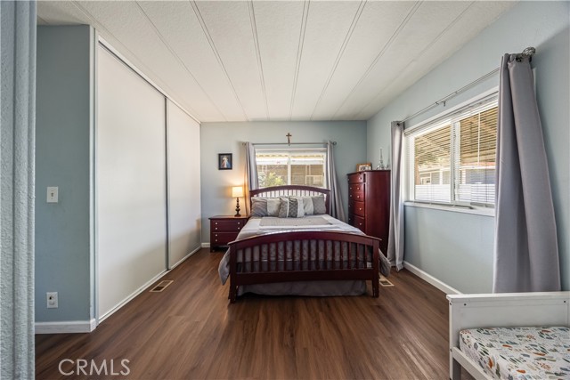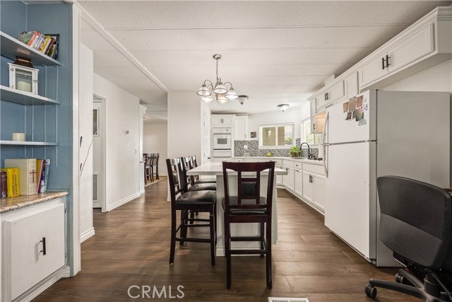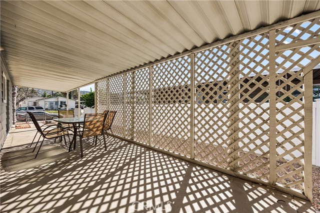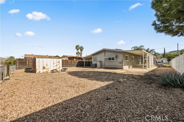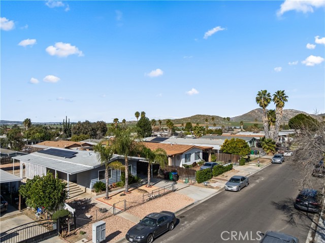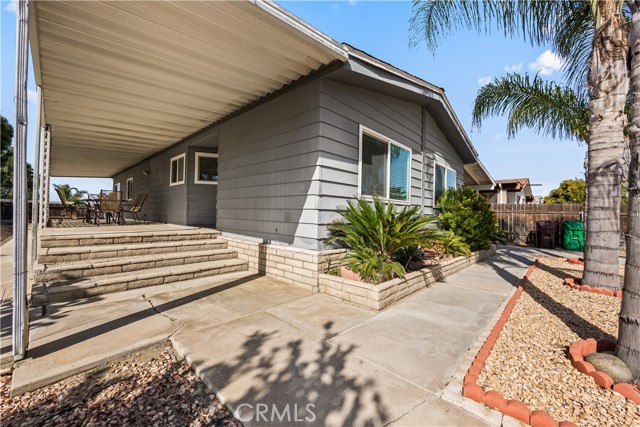 Beautifully remodeled 3 bedroom, 2 bath manufactured home located in the charming small town of Nuevo. This inviting home offers a bright open-concept kitchen and family room, complemented by a separate living room and formal dining area with built-in cabinetry. The fully remodeled kitchen features granite countertops, gorgeous glass tile backsplash extending to the cabinetry, farmhouse sink, white appliances, and premium finishes throughout. The spacious primary suite includes a private bath with relaxing garden tub and separate shower. Two additional well-sized bedrooms provide flexibility for guests, family, or home office use. Enjoy easy-care front and back yards, mature palm trees, covered front patio with privacy lattice, and ample covered parking. Two storage sheds offer additional convenience. Major upgrades completed in 2020 include vinyl windows, remodeled kitchen and bathrooms, premium vinyl flooring, new ducting for HVAC system , and updated interior gas piping. Additional recent improvements include a new roof (approximately six months old) and leased solar system for energy efficiency.