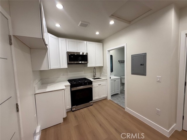 Welcome to this beautifully updated single-residence property with a detached ADU, offering a total of 4 bedrooms, 4 bathrooms, and approximately 1,834 SqFt of living space. With both a front and backyard, this versatile home is perfect for multi-generational living, rental income, or a private guest retreat. Main Home: Approx. 1,434 SqFt : 3 Bedrooms and 3 Bathrooms The main residence features a bright, modern interior with recessed lighting, warm wood-tone flooring, fresh white paint, and ceiling fans throughout. The updated kitchen includes modern cabinetry and appliances, and a dedicated laundry room offers convenient washer and dryer hookups. ADU: Approx. 400 SqFt: 1 Bedroom and 1 Bathroom The ADU offers its own stylish finishes, including gray wood-look flooring, recessed lighting, a functional kitchen with appliances, and a stacked washer/dryer area with tile flooring, ideal for added convenience and privacy. A rare opportunity to own a move-in-ready property with flexible living space and incredible potential!