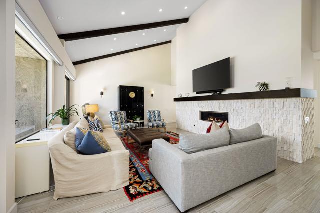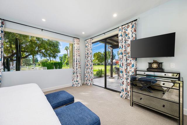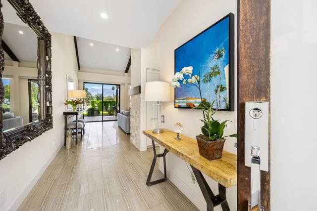 Superb Value in Rancho Mirage, located inside Mission Hills Country Club with breathtaking mountain views and incredible sunsets from the primary bedroom! This home features 2 bedrooms, 2 baths, with a primary bathroom that includes both a separate shower and a soaking tub. The chef's kitchen offers an island with additional seating for entertaining, along with beautiful stainless steel appliances. The living room showcases cathedral ceilings a fireplace and stunning mountain views. The back patio also includes a fireplace for cozy outdoor evenings. The courtyard offers a complete outdoor kitchen and sitting area, perfect for entertaining. The property also includes a two car garage plus a separate golf cart garage. Fondly known as a ''suitcase home'', just bring your suitcase and move right in.