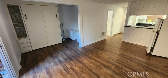 South Coast Metro Area Studio Condo in the MacArthur Village community . Features include ; pool view lower location , new hardwood style flooring , black granite counters , full kitchen has a dishwasher / slide in stainless electric stove oven / new stainless refrigerator / stove exhaust fan / upgraded refaced white cabinets / breakfast bar , full bath has a shower in tub / vanity area / mirrored closet doors , queen size murphy bed , desk area , raised interior doors , freshly painted , enclosed patio , gas / water / trash / sewer paid , aprx 504 sq ft , wall heat & new LG AC, 24 hour gate guarded MacArthur Village community offers 5 pool & spa areas / 4 tennis courts ( one lined for pickleball ) / gym / laundry rooms / basketball court / barbeque areas / clubhouse , one block from South Coast Plaza / fine dining / coffee shops / Performing Arts Center .
