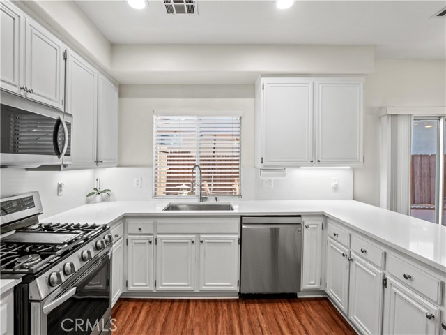 Beautifully upgraded and meticulously maintained residence located on a quiet cul-de-sac, offering extensive recent improvements and thoughtful enhancements throughout. The home features newer luxury vinyl plank flooring on the lower level and in all bathrooms, fresh interior paint, and updated lighting that creates a bright, modern feel. The remodeled kitchen showcases new quartz countertops, newer stainless-steel appliances, updated faucets, and stylish finishes that flow seamlessly into the main living areas. Bathrooms have been tastefully refreshed with new faucets, updated fixtures, a new dual showerhead in the hall bath, and quartz countertops in the powder room. Additional upgrades include new doorknobs throughout, a new front door handle and lock, new hardwired ceiling fans, new dimmer ceiling lights in the family room, and a programmable smart thermostat. Energy-efficient features include solar panels, tinted UV coating on lower windows, and a newer water heater. The heating and cooling system is professionally serviced annually (last serviced 1/25/2026). Outdoor enhancements include a new security door, new gate and side fence, automatic sprinklers and drip lines in the front yard, and a gas fireplace inside with an exterior gas line for a barbecue—perfect for comfortable indoor-outdoor living and entertaining. A truly move-in-ready home with thoughtful upgrades, modern finishes, and exceptional care throughout.