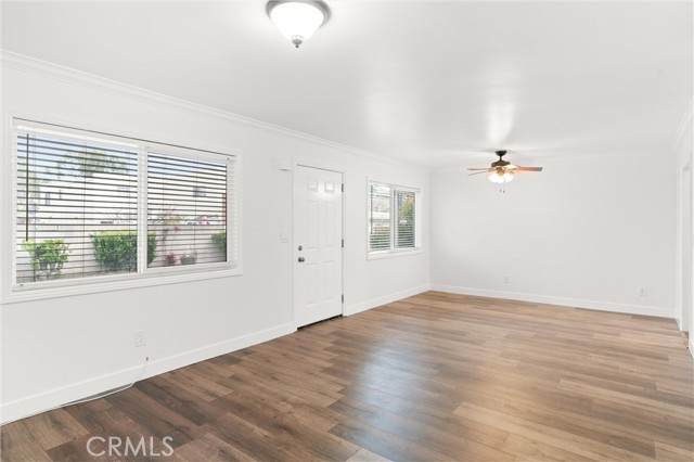 Welcome to your charming coastal retreat in Huntington Beach! Just blocks from the sandy shores and vibrant downtown area, this cozy downstairs 2-bedroom, 1-bathroom home offers an ideal blend of comfort and convenience. Upon entering, you're welcomed by an inviting open layout seamlessly connecting the living area, dining room, and kitchen. The kitchen boasts quartz countertops, a dishwasher, gas stove/oven, and ample storage space. Throughout the home, enjoy new vinyl flooring and the central heating. Each room features a ceiling fan, spacious closets, and blinds for every window. Onsite laundry facilities, along with one locked garage parking space and one uncovered space per tenant, add to the convenience. Rent includes water and trash, while tenants are responsible for electricity, gas, and internet. Welcome home to coastal living at its finest!