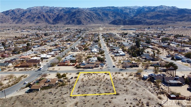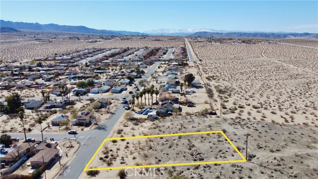 Located in the highly desirable and developed neighborhood, Chocolate Drop, this 1/2 acre parcel has power at the perimeter of the lot and water on the Sunnyslope. Centrally located with the City of 29 Palms, 4 Corners and all other amenities are 5 minutes away, The 29 Palms Inn and Tortoise Rock Casino just bit further, and the east entrance of Joshua Tree national park just 15 minutes away. The adjoining parcel, 0615-161-01-0000, is also for sale and the seller will negotiate on the sale of both. 29 Palms is growing and changing and you don't want to pass up the opportunity to be a part of it! OWNER WILL CARRY!!! Buyer to verify utilities and lot lines.