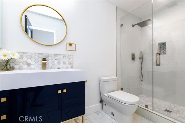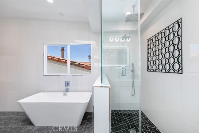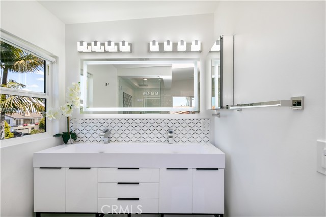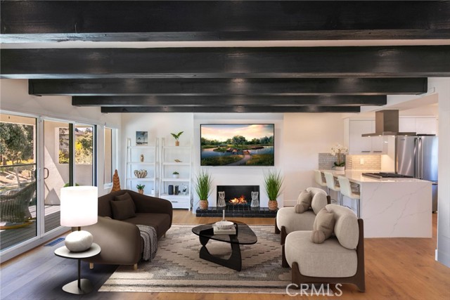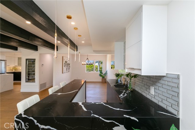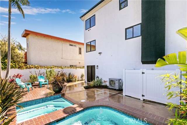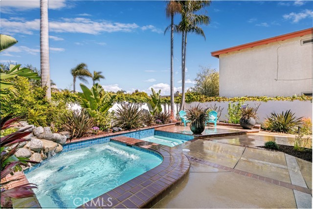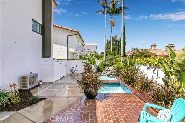 Modern Beach city living brings luxurious Coastal Design, with an open concept floor plan. From the moment you arrive, double entry doors welcome you into a light-filled haven, thoughtfully curated for both relaxation and entertaining. The first floor bedroom has a gorgeous ensuite bathroom with a private slider for direct access to the backyard. You can enjoy views of palm trees and sounds of the rock waterfall. The chef’s kitchen is a culinary dream—featuring white Euro cabinetry, Quartz counter tops, all Viking appliances, built-in wine cooler, and sleek lines that echo the home’s architectural pedigree. Exposed beamed ceilings and natural light pouring through skylights and expansive windows create an airy, open ambiance throughout. The second bedroom has a designer shower and huge bedroom closet. The primary third bedroom suite is an expansive 400 square feet where a private balcony invites coastal breezes and sun-filled mornings. Indulge in the spa-inspired ensuite bath with marble flooring, boasting a luxurious rain shower, deep soaker tub, dual vanity with abalone shell backsplash and backlit vanity mirror, and a custom-designed wardrobe closet fit for a king. This exceptional home features three bedrooms and four baths and was completely renovated with attention to detail in 2023. Spanning 2,246 square feet, an open floor plan, wood floors, a custom glass staircase, and designer finishes. Enjoy indoor-outdoor living at its finest with tranquil outdoor seating areas, a zero-scape patio for effortless maintenance, and a refreshing plunge pool and spa complete waterfall. Minutes from Surfing, Bike riding, Paddle boarding, Bolsa Chica Wetlands trail & dog-friendly beaches. This residence offers the perfect blend of coastal lifestyle, thoughtful luxury, and architectural distinction. Welcome to your modern sanctuary by the sea.