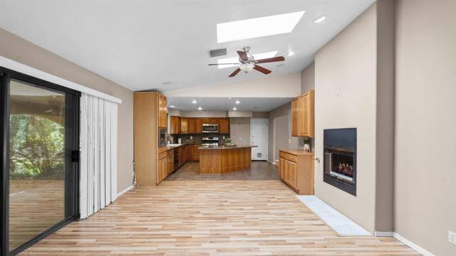 Welcome to 2919 Pioneer Way, Jamul, CA 91935. A stunning single-story ranch-style home set on 1.24 acres of fully usable, fenced land, perfect for entertaining, animals, and enjoying the Jamul lifestyle. This 3-bedroom, 2-bath home offers 1,894 sq. ft. of open and inviting living space with high ceilings, a seamless floor plan, and all-new laminate wood flooring throughout. The spacious kitchen features an island with granite countertops and opens directly to the family room, creating an ideal space for gatherings. Enjoy the warmth of a dual-sided fireplace shared between the living room and family room. The primary suite is a private retreat with its own fireplace, a huge walk-in closet, dual sinks, a walk-in shower, and sliding glass doors leading directly to the backyard. Additional bedrooms are generously sized, offering comfort and flexibility. Step outside to your entertainer’s dream backyard complete with a large patio, BBQ area, and a private bar, all surrounded by mature fruit trees including guava, lemon, avocado, persimmon, along with passion fruit plants, grape vines, and banana plants. This horse property offers endless possibilities for outdoor living, gardening, or equestrian use. Additional features include a 2-year-old roof, 1-year-old water heater, and a garage with extensive cabinetry and double doors. Conveniently located just minutes from Jamul Casino and Hwy 94, this property offers privacy, space, and accessibility. A must see property with endless potential!