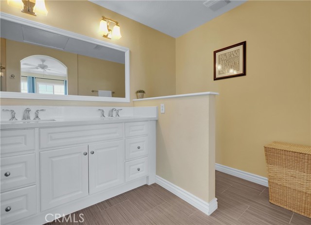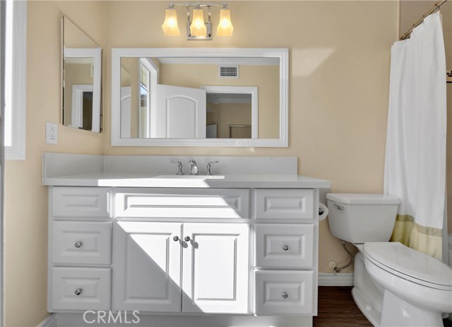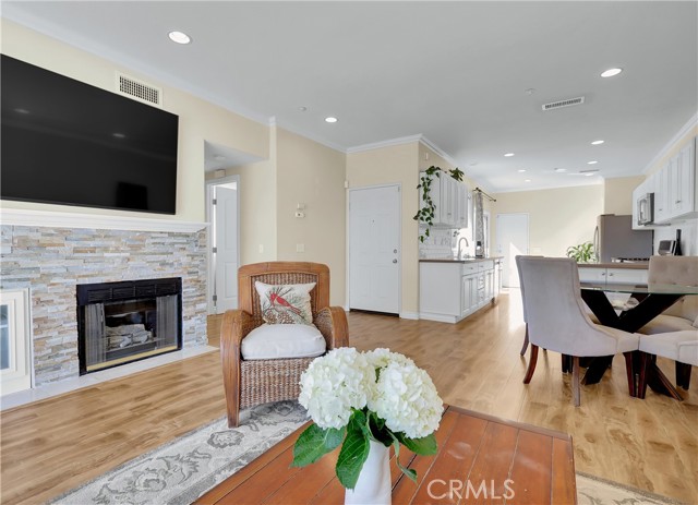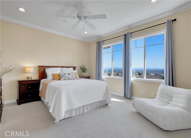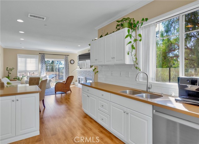 Beautifully updated home, ideally located in the desirable Orleans gated community and blessed with a prime location on a corner lot perched hilltop with a southern exposure, plus gorgeous city light and rolling hill views! The gated entrance and private walkway lead you to the front entrance and a sunny front patio. Step inside and soak in the light filled, open concept floor plan, sleek wood laminate floors, crown molding, framed windows and doors, recessed lighting, and gorgeous sit-down rolling hills views, all creating a perfect living environment. The living area, which is open to the dining area, boasts an enticing stacked stone fireplace with built-in bookcase, and sliding doors opening to the back patio providing an ideal indoor-outdoor living space. The spacious kitchen has been thoughtfully updated with Quartz countertops, gleaming subway tile backsplash, timeless white cabinetry, stainless steel appliances, and sliding doors opening to the front patio, a perfect space for morning coffee with loved ones. The main level includes a convenient updated powder room with gorgeous pedestal sink and framed vanity mirror. The spacious primary bedroom suite is a private retreat with crown molding, ceiling fan, recessed lighting, mirrored closet doors and breathtaking views of city lights and rolling hills. The primary ensuite bath has a beautifully updated Quart topped vanity, updated lighting, framed vanity mirror, updated hardware and faucets, a remodeled step-in shower, custom tile surround with glass tile accents, and frameless glass enclosure. The guest suite also includes crown molding, recessed lighting, mirrored closet doors, and a similarly updated ensuite bath creating a brilliant design flow throughout the home. Improvements include Pex Plumbing, 2018 updated Trane AC Unit, 2024 New Garage Door mechanism and 2025 new springs installed in the convenient direct access 2 car garage. You will fall in love with the private, sundrenched, wrap-around yard boasting two patio spaces with glass fencing and water conscious artificial turf providing an exclusive space for enjoying the amazing views and cool ocean breezes. Community amenities include gated entrance and community pool and spa surrounded by picturesque tropical landscaping. Short stroll to Acorn Park and Oak Grove Elementary. Walking distance of shopping, dining, theaters at Aliso Viejo Town Center, hiking and biking trails nearby, and just minutes from iconic beaches and Dana Point!