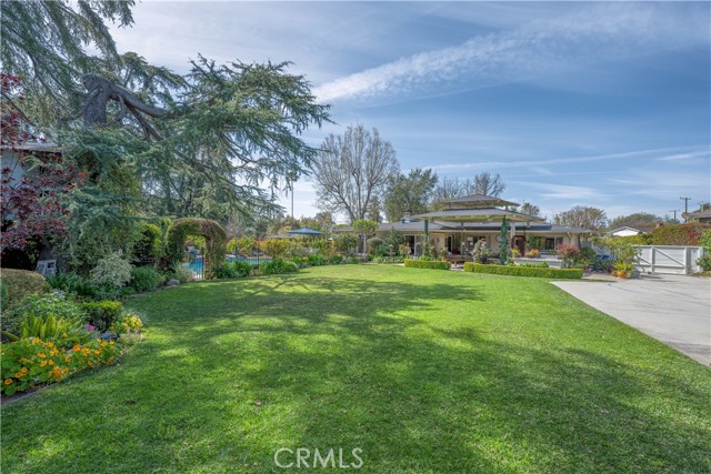 Step into this charming single-story home for lease, featuring 3 bedrooms and 2 baths, a versatile family room that can serve as a private guest suite and a full guest house/Casita at the rear of the property. Expansive rear grass area, covered patio, swimming pool and basketball court are just some of the features of this home. The expansive kitchen boasts sleek granite countertops, a professional-grade range, a dishwasher, garbage disposal, and a large central island. Flowing seamlessly from the kitchen, the dining room opens to a spacious, light-filled living room, with beautiful hardwood floors and large windows that overlook the backyard. On a sprawling 19,000-square-foot lot, the backyard is a true oasis, offering a generous grassy lawn, a fenced pool with a jacuzzi, and lush garden beds featuring orange, apple, pear, pomegranate, and lemon trees, along with a rose garden and vibrant cut-flower landscaping. Additional features include central air and heating, an automatic driveway gate for added privacy, a two-car carport, a fenced vegetable garden, a covered patio, a half-court basketball setup, and a built-in barbecue area—perfect for entertaining. This home is available for a one-year lease! Water gardener and Trash are included. Available April 1st.