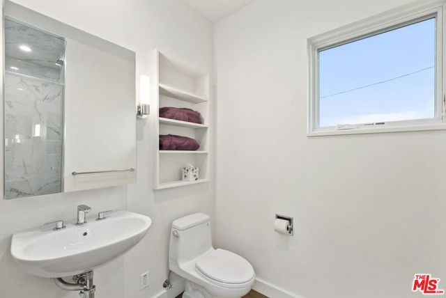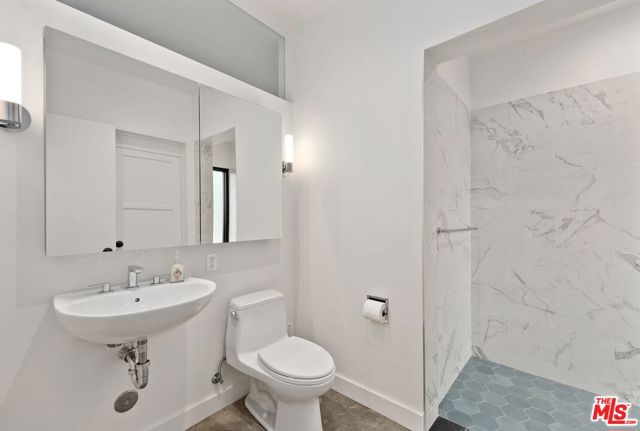 Step into a sanctuary where sunlight dances across polished cement floors and ocean breezes whisper through the open terrace. This two-bedroom, two-bath retreat is situated not far from the bluffs, where you can gaze out over the endless shimmer of the Pacific. Each space is crafted for serenity and gentle living, from the thoughtfully designed kitchen, complete with a washer and dryer, to the tranquil upstairs terrace, where the horizon unfolds in hues of blue and gold. The primary suite is a haven of calm, opening directly onto the terrace so that dawn and dusk become part of your daily rhythm. A walk-in closet and en suite bath add to the sense of effortless comfort, while the enclosed yard, dotted with fruit trees, invites you to linger in nature. Features include: Concrete and wood-plank floors, a steam shower, stainless steel appliances, and an open brick patio blend modern elegance with organic warmth. This structure has been remediated, and, of course, you can take any tests you like at your expense before moving in. The main house is gone. There is one house next door, and others around the bluff are under construction or undergoing remediation. This is a disaster area. There is one elementary school in the Palisades currently open. The high school is open. The 2 grocery stores in the village burned down. Please feel free to drive prior to scheduling an appointment. My sign is on De Pauw; the house is at the rear of the lot.