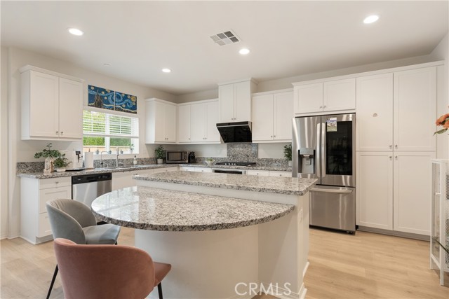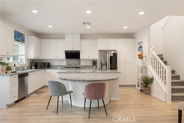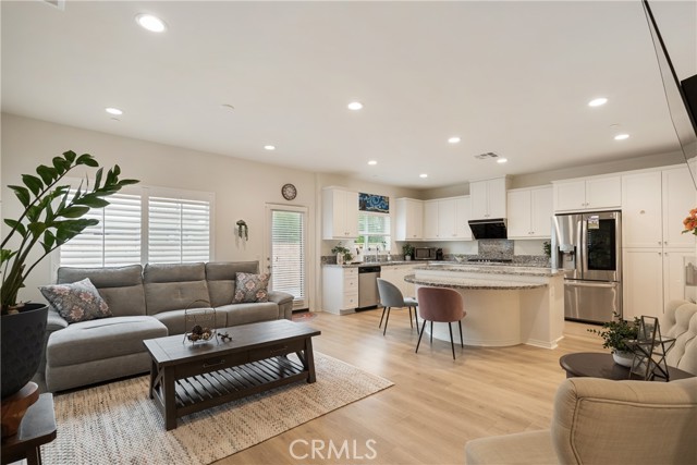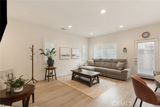 Say Hello to 7194 Crescendo Lane in the beautiful Encore at Providence, a gated community in North Fontana! Comfort, style, and convenience come together in this cozy three-bedroom, three-bathroom home, thoughtfully upgraded with modern flooring and natural light that flows through the plantation shutters, adding warmth throughout. The beautiful kitchen has granite counters, a gas stove, and a high-efficiency ventilation system for gourmet cooking. Upstairs, you will find a spacious loft with a flexible layout, ideal as a home office, entertainment space, or playroom to fit your lifestyle. Comfortable and spacious primary bedroom with plantation shutters, complemented by a large ensuite bath featuring dual vanities, a step-in shower, and a roomy dressing area. Step outside to a low-maintenance backyard with pavers, designed for easy outdoor living without the upkeep. Even better? A fully paid solar system, giving you energy efficiency and peace of mind with lower utility costs, with no worries about generating electricity. A two-car garage with direct access to the home. An EV charger, a water softener, and a tankless water heater are included. The community HOA fee of $182 per month provides access to a private neighborhood with a playground, outdoor fitness area, and large BBQ picnic areas, ideal for gatherings and family fun, all within a gated community. Location is everything here: A few minutes to the 210, 15, or 10 freeways. Enjoy a quick drive to Chaffey College and the University of San Bernardino. Only 5 miles to Victoria Gardens for shopping, dining, entertainment, and fun. It's an easy drive to the mountains for skiing, snow play, and year-round outdoor adventures. With upgrades, versatility, and lifestyle in one complete package, priced at $609,000, this unbeatable home is one you won't want to miss. Make 7194 Crescendo your next home!