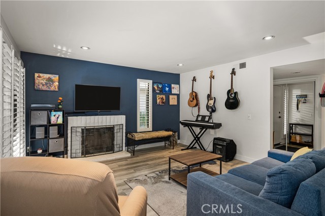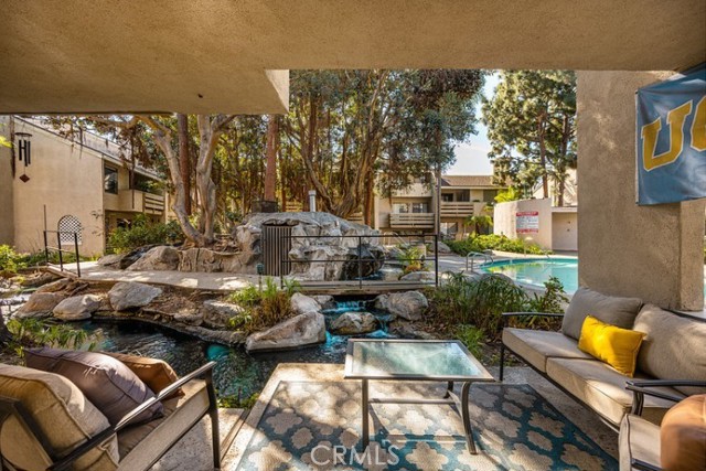 421 Bryson Springs | Front-Row Poolside Living on the Sunny Side. This is a premier front-row residence ideally positioned on the sun-drenched side of the pool in one of the most desirable locations within the community. This is arguably one of the best settings in the neighborhood, combining light and resort-style ambiance. Enjoy direct front-row views of the sparkling pool and spa from your private outdoor space, perfectly oriented to capture warm morning and afternoon sunshine and golden evening light. The bright exposure makes this home feel open, cheerful, and inviting year-round a rare advantage compared to interior or shaded locations away from the pool. Inside you will find natural light, a welcoming living room anchored by a cozy fireplace, and an open layout designed for easy living and entertaining. The spacious bedroom retreat provides comfort functionality and style with a killer reclaimed wood accent wall, beautifully remodeled primary bathroom, and a new kitchen with 2024 appliances, creating a move-in ready opportunity. This home is set within a beautifully maintained community surrounded by mature landscaping, streams, and tranquil water features, Bryson Springs offers a true resort lifestyle. Residents enjoy pool and spa amenities, peaceful walking paths, and a central Costa Mesa location just minutes from shopping, dining, beaches, and convenient freeway access. The property also offers a single full car garage and carport right in front of the property. If you are looking for one of the best-located units in the community- bright, front-row, and poolside - 421 Bryson Springs stands apart -