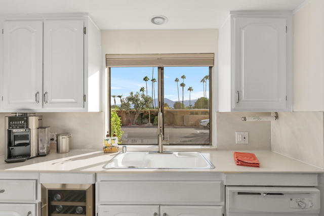 Currently leased November 15 thru January 31, 2027. Available Feb 1, 27 for Seasonal lease at $5,500 per month. This two-bedroom, two-bathroom furnished condo offers 1,644 square feet of living space. The home features stunning mountain views and overlooks the second hole of the famous Bermuda Dunes Country Club, providing a serene and picturesque setting. The great room seamlessly integrates the living room, dining room, and kitchen, creating a warm and inviting atmosphere. Large windows throughout the home allow natural light to flood the space, enhancing the overall sense of brightness and openness. The kitchen has a newer stainless steel refrigerator and a built-in wine cooler. The adjacent dining area offers a comfortable setting for enjoying meals, entertaining guests, or simply gathering with loved ones. The primary bedroom is a comfortable space, offering ample room for a variety of furnishings. The attached bathroom includes an updated vanity, and a walk-in closet creating a private retreat. The additional bedroom is versatile, with an en-suite bathroom. The outdoor space includes views of the golf course where you can enjoy a glass of wine with your friends. The previous owner replaced all sliders and re-tiled the floors with porcelain tile throughout. The condo was freshly painted in 2024. Attached two-car garage/golf cart garage offering lots of storage. IID for lower electric bills. Come and view this lovely property today!