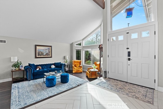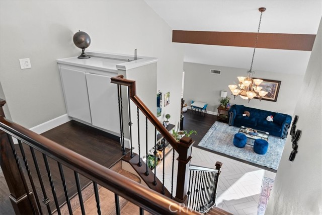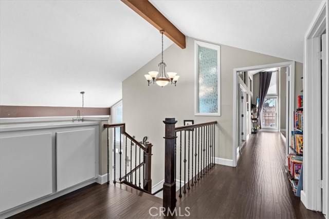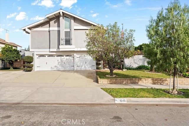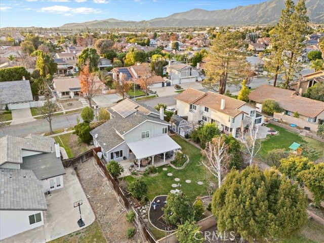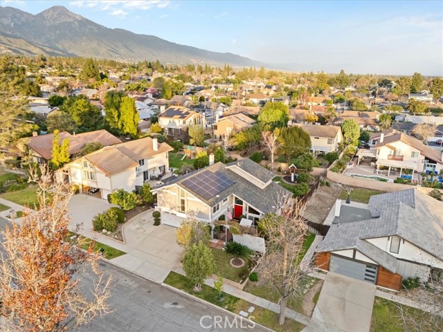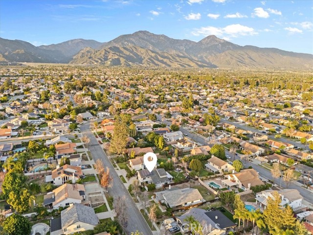 Welcome to this exceptional two-story residence located in highly desirable North Upland. From the moment you enter, you are greeted by dramatic wood beam ceilings, custom chandeliers, and an inviting atmosphere that blends warmth with timeless design. The main level features a formal living room with cathedral ceilings and picture windows that flood the space with natural light, along with a formal dining room perfect for gatherings. The remodeled kitchen showcases custom cabinetry, a farmhouse sink, stainless steel appliances, instant hot water system, and opens seamlessly to the family room anchored by a cozy fireplace. A beautifully remodeled ¾ bath is conveniently located downstairs. Direct access to the three-car garage includes epoxy flooring, Tesla charging station, and a dedicated workshop area. Upstairs, the spacious primary suite offers a massive walk-in closet, a separate room with built-in cabinetry and laundry, and a luxurious en-suite bathroom with dual vanities, soaking tub, and separate shower. Two additional bedrooms include one with a custom play loft, adding charm and flexibility. This home is designed for efficiency and comfort with paid solar, water softener, reverse osmosis system, zoned heating and cooling, and dual pane windows to help reduce monthly utility costs. The exterior is equally impressive, featuring a gated courtyard entrance, covered patio with heaters, retreat-style yard with fire pit and park lamp, dog kennel, storage shed, and 14 mature fruit trees. Ideal for entertaining or relaxing year-round. Located within the Peppertree Elementary and Pioneer Jr. High boundaries and offering convenient access to the 210 freeway and nearby shopping. Homes with this level of upgrades, energy efficiency, and outdoor amenities rarely become available. Schedule your private showing promptly.