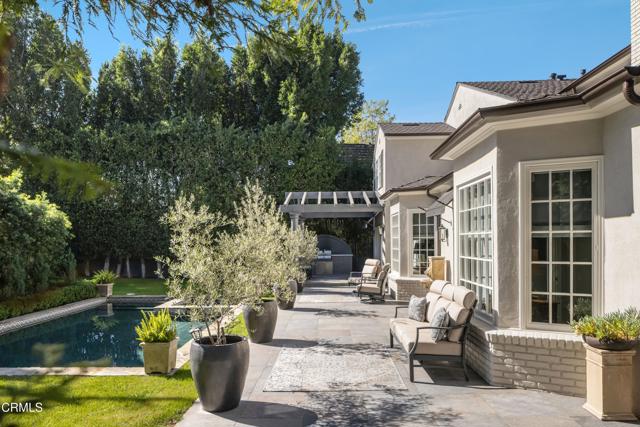 Welcome to 2390 Ridgeway Road, a sanctuary estate nestled in the esteemed heart of The City of San Marino, North of Huntington Drive. This historic home, recognized by The City of San Marino as a potential contributor to the Huntington Hill Historic District, embodies the essence of timeless elegance and refined living. Originally crafted in 1936 by the renowned builder E.A. Daniell, this Colonial Revival masterpiece stands as a testament to architectural excellence and enduring quality. Meticulously restored to its original grandeur by Greenwich Home Construction & Remodeling Inc., this award-winning estate seamlessly merges classic charm with modern luxury. Step inside and be greeted by an expansive foyer leading to a professionally decorated living room, adorned with a wood-burning fireplace and beamed ceiling, and a gracious formal dining room featuring custom ceiling moldings and oversized bay windows, bathing the space in natural light. The kitchen, thoughtfully renovated with premium materials, boasts ample cabinet space, natural stone marble countertops, and high-end commercial appliances. French doors from the kitchen and living areas effortlessly blend indoor and outdoor living, inviting you to explore the lush custom-designed gardens. The second level offers a tranquil retreat with a cozy den and three spacious ensuite bedrooms, each exquisitely appointed with custom details. Luxurious touches abound in the renovated bathrooms, showcasing soaking tubs, marble accents, and high-end fixtures. Original hardwood floors throughout the home add warmth and character, while the expansive park-like lot, newly landscaped gardens, and sparkling pool and spa create a private oasis for relaxation and entertainment. Completing this extraordinary property is an oversized detached garage with additional storage space, crowned by a cupola and copper weathervane. In every detail, 2390 Ridgeway Road epitomizes the timeless allure of historic craftsmanship and bespoke luxury. A rare opportunity for the discerning buyer to own a piece of San Marino's rich architectural heritage, meticulously preserved for generations to come.