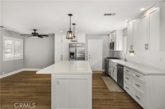 Stunning single-story home in the heart of Huntington Beach. From the curb, you will immediately see this is something special. First time ever offered as a rental and always lovingly cared for by its owners. The perfect floor plan features a spacious, bright living room with newly installed flooring and a custom stone fireplace. The kitchen is a dream — newly renovated with all-new white cabinetry, quartz countertops, and stainless-steel appliances. Enjoy the expansive kitchen, a perfect place for everyday living. The dining room opens to the kitchen, offering the ideal setting for hosting both formal and informal gatherings with friends and family. Completing the interior are three well-appointed bedrooms and two full bathrooms. Home was originally four bedrooms, walls have been removed to expand the living space. Recent interior updates include fresh light paint, designer-selected lighting and cabinetry, shutters, crown molding, ceiling fans, and new flooring. The highlight of this home is the tranquil backyard with lush greenery, patio cover, and a cozy fire pit all completing the space. The front yard features a large grass area, a beautiful white fence front yard and a newly built patio trellis. Two-car garage with plenty of storage and an oversized driveway add to the charming curb appeal. Enjoy everything HB has to offer — Best location with just 3 short miles to the sand, extensive bike paths, award-winning schools, and fine dining. The neighborhood offers unbeatable convenience with a premier shopping center just steps away, including Target, Whole Foods, Starbucks, Stater Bros., CVS, Shake Shack, Kohl’s, and more. Life is easy in this beautiful home! Owner will consider small dogs under 10lbs.