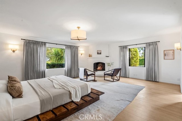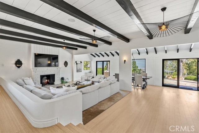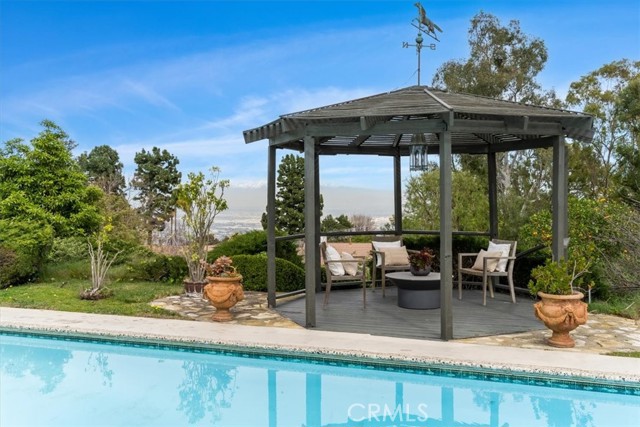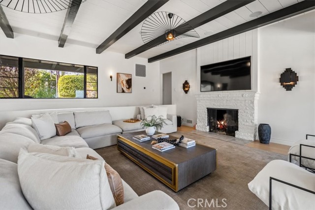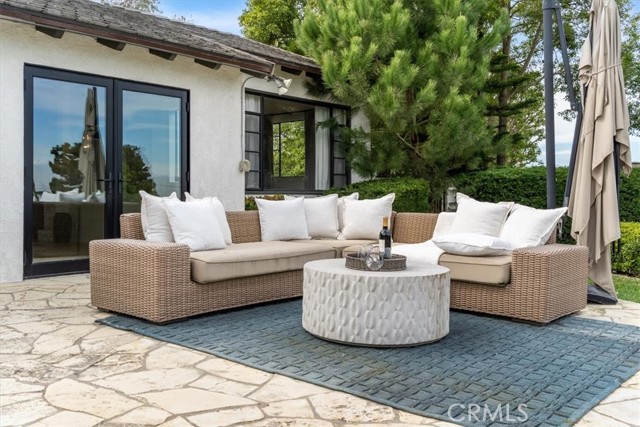 Located within the prestigious 24-hour guard-gated community of Rolling Hills, this beautifully updated single-level home offers privacy and sweeping city and mountain views. Interior highlights include exposed beam ceilings, wide-plank flooring, designer lighting, and multiple fireplaces. The updated kitchen features custom cabinetry and premium appliances, with living spaces that open seamlessly to expansive stone patios for ideal indoor/outdoor living. The home offers two en-suite bedrooms, including an oversized primary suite with fireplace and sitting area. Bathrooms are tastefully upgraded with clean, modern finishes. A smart home system provides centralized control of music, TV, heating, and air conditioning throughout. Outdoor amenities include a pool, mature landscaping, and generous usable grounds. A long private driveway leads to a 3-car attached garage plus a separate detached garage. Quiet cul-de-sac location within one of the Peninsula’s most exclusive gated communities.