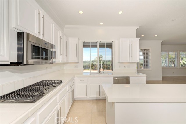 This beautifully maintained home offers an exceptional lease opportunity with breathtaking panoramic views and a premier end-of-cul-de-sac location, providing both privacy and tranquility. Upon entry, you’re welcomed by fresh interior paint and elegant marble flooring that spans the entire first level, creating a bright and inviting ambiance. Custom crown molding, upgraded baseboards, and classic plantation shutters throughout add timeless character and warmth. A spacious family room with a cozy fireplace and built-in entertainment center provides the perfect gathering space. A desirable main-floor bedroom and full bathroom offer flexibility for guests or a private home office. The bright and functional kitchen features a large center island with a brand-new quartz countertop, stainless steel dishwasher, generous walk-in pantry, and a charming breakfast nook. An individual laundry room with sink and cabinetry is conveniently located just off the kitchen for added ease. Upstairs, brand-new carpeting adds comfort throughout. The spacious primary suite features a private retreat — ideal for a home gym, office, or unwinding after a long day. The ensuite bath includes dual sinks with vanity, a large walk-in closet with dual entries, and a separate soaking tub and shower. Step outside to an expansive backyard designed for both entertaining and relaxation, complete with a fire pit and brand-new built-in BBQ. Sweeping panoramic views create a spectacular backdrop for outdoor gatherings or peaceful evenings at home. Additional highlights include a two-car garage plus a separate single-car garage — ideal for additional storage, golf cart, or a third vehicle — both finished with epoxy flooring. Residents of Ladera Ranch enjoy a vibrant, family-oriented lifestyle with year-round events including Fourth of July fireworks, summer concerts, seasonal festivals, holiday celebrations, farmers markets, movie nights, and community gatherings. Amenities include multiple clubhouses, pools, splash pads, water parks, sports courts, dog parks, and miles of scenic walking and biking trails. Cox high speed internet is included. The home is conveniently located near parks, schools, and shopping, with easy access to the I-5 Freeway and the 241 Toll Road for a smooth commute. With fresh updates, stunning views, and a desirable location, this home presents a wonderful leasing opportunity.