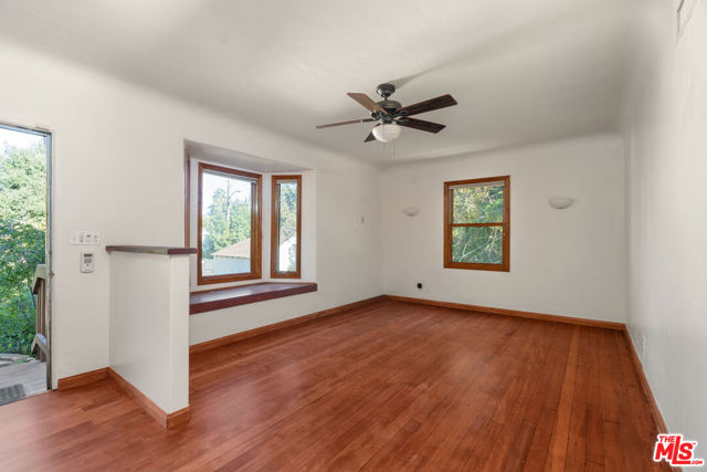 Enchanting hillside home located in the Hollywood Hills West near Universal Studios. Ideal artist retreat / creative space for a Musician, Writer, Artist, Film / TV Editor, etc. Fantastic outdoor decks for entertaining guests. Ideal for an avid Gardener. Create your own Wonderland. // Lower Floor: Enter into a bright spacious living room with wood floors. Open concept Dining area easily accessible to beautifully updated kitchen with stainless steel appliances and artistic colorful backsplash. Crisp bathroom with classic subway tiles and bathtub / shower plus linen closet. Upper Floor: Dreamy bedroom is a rustic wood paneled loft space with vaulted ceilings, cozy fireplace and scalloped-trimmed windows. Spacious armoire closet with drawers. Updated bathrooms with white subway tiles and blue accent tiles. Plus, 2 sinks and plenty of storage space. // One car detached garage with EV Charger. RV / Boat parking available. Outdoor patio with fenced-in dog-friendly yard. Bountiful storage underneath the main house. Convenient central location. Close to Universal Studios / City Walk, NBC Universal. Easy access to 101 FWY and Ventura Blvd teaming with restaurants and shops.