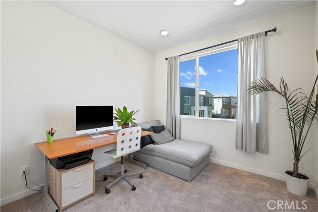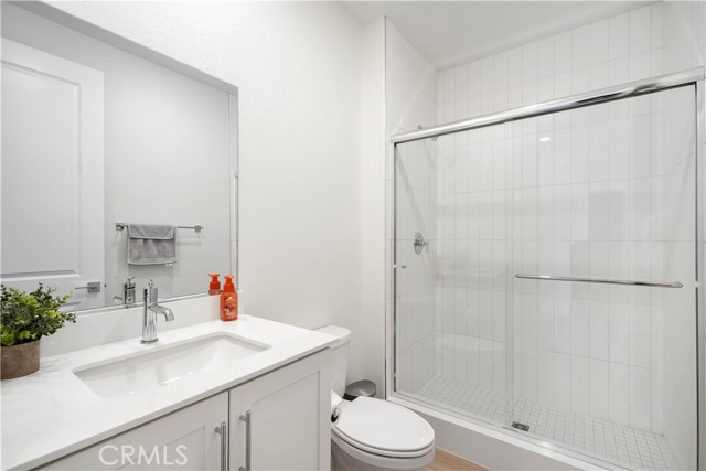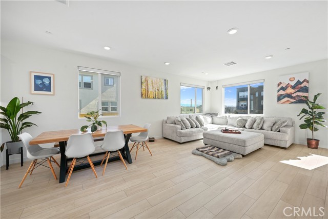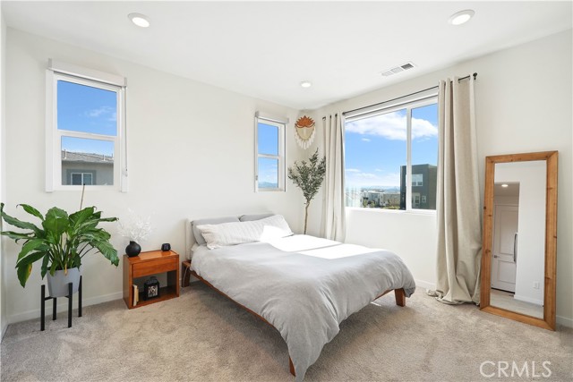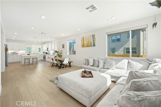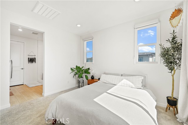 Amazing opportunity to live in the much sought after Five Point community in Valencia! Newly constructed tri-level elevation home epitomizes all the luxuries and sophistication of everyday living. Corner unit with only one shared wall and inviting courtyard entry opens to this light and bright 4-bedroom, 3.5-bathroom townhome with 2,054 square feet of living space. Main level features an open floors plan with kitchen, living room and powder room. Sun-filled kitchen with views abound is equipped with a large center island, stainless steel Whirlpool appliances, walk-in pantry, Quartz countertops, stylish backsplash, and white shaker cabinets. Center island overlooks spacious living room area with wider planked wood-like floors plus tons of natural light, providing a tranquil and peaceful living space. The upper level features your primary suite, two additional well-sized bedrooms and laundry closet with side-by-side washer and dryer. Elegant primary suite with plush carpeting, spacious walk-in closet, and primary bathroom with dual vanity sink and oversized walk-in custom tiled shower. Upper third level also features two additional Jack & Jill bedrooms with an adjoining bathroom. Lower-level features quaint entry area adjacent to full bathroom and fourth bedroom that could be used as office, gym or guest bedroom with sliding glass door overlooking the front courtyard. Lower level is also attached to 2-car garage with convenient direct access. Ideal for modern living with eco-friendly amenities like solar panels to help significantly reduce electric bills, ecobee thermostat, EV charger and tankless water heater, allow for convenience and sustainability. Situated in a prime location this luxury lease is just a two-minute walk to Confluence Park with three resort like pools and huge jacuzzi tub, plus outdoor showers, playgrounds, and the Community Center. Brilliantly located near major roads, easy access to freeways, amusement parks (Magic Mountain is just minutes away!), shops, restaurants, award winning schools and more.