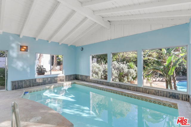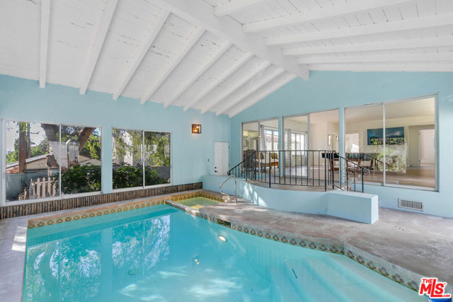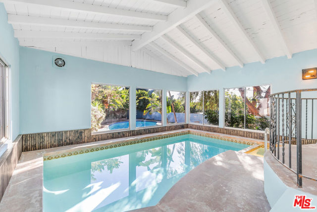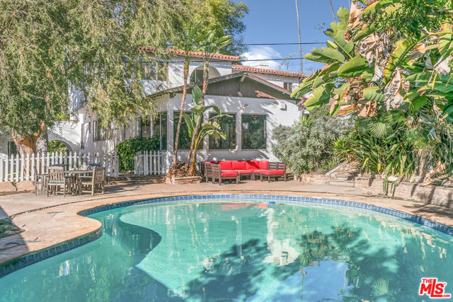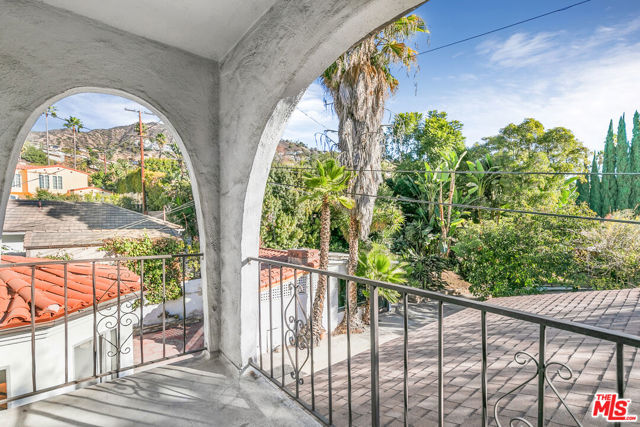 Perched high in the Glendale Hills, this 1934 Spanish-style treasure offers 4,705 sq ft of timeless charm on a sprawling 14,400 sq ft lot. The home features a grand living room with soaring ceilings, arched windows, and a stately fireplace. The whimsical kitchen boasts cobalt blue cabinetry, vintage details, and a sunny breakfast nook. The backyard is an entertainer's paradise with a sparkling outdoor pool, lush greenery, built-in grill, pizza oven, and a mature avocado tree. Inside, enjoy the luxury of an indoor pool and hot tub for year-round indulgence. The upstairs primary suite includes a private living room and balcony with serene views. A recreation room with pool table, detached studio, two-car garage, and driveway parking complete this unique hillside retreat. Memories are waiting to be made at 1530 Valley View.