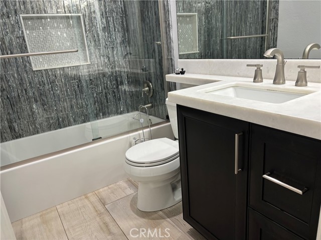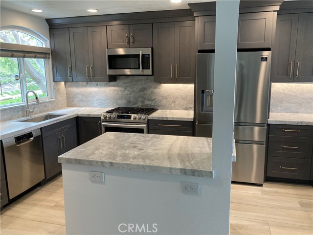 Located in the resort like La Vista community, this exquisitely remodeled home is a rare find! 2 bedrooms and 2 baths on one level and each bedroom occupies a corner of the home to have its own privacy. A laundry area and a 2 CAR ATTACHED GARAGE with a DIRECT ACCESS into the home are on a lower level. A meticulously and beautifully re-designed kitchen with top of the line materials, including high quality cabinetry, appliances, and exotic countertops and full backsplash, will surely create a luxurious living experience for you! Both bathrooms were highly upgraded with gorgeous cabinetry, frameless shower doors, tiled walls & baseboards, and unique mosaic tiles. Open and bright with views of green hills. Italian porcelain commercial grade plank tile flooring throughout. Custom wrought iron stair railing. Newer windows and sliding glass door. Digital fireplace surrounded by stack stones in the living room. A spacious walk-in closet in the master suite and a large mirror closet in the secondary bedroom. Newer PEX re-piping, newer water heater, and LED lighting. Refrigerator, washer, and dryer are included w/o warranty. Newer HVAC! EPOXY flooring in the attached garage. Water and trash are included. HOA amenities include the newly renovated pool, spa, gym, and the club house. Newer exterior painting. Walk down the street to the prestigious El Niguel golf course and country club. Bike and jogging paths lead to Salt Creek beach world renowned resorts such as Ritz-Carlton and Waldorf Astoria. Short drive to downtown Dana Point and harbor. Call today!