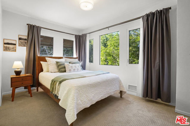 Escape the hustle and bustle of city life and experience true peace and tranquility in this stunning 3 bedroom, 3 bath home perched on a quiet street above the Silver Lake Reservoir. With its wall of windows and airy, open floor plan, this home is flooded with natural light and offers breathtaking panoramic views from nearly every room. Step inside and you'll immediately be struck by the sweeping views and the bright, welcoming atmosphere. The spacious living area is perfect for entertaining or relaxing, while the adjacent dining area offers ample space for hosting dinner parties or enjoying casual meals with family and friends. The primary bedroom is a true luxury retreat, featuring a spa-like en-suite bath and large windows that provide stunning views of the reservoir and the surrounding hills. A decorative fireplace, seating area, walk-in closet, and private balcony complete your oasis in the sky. Two additional spacious bedrooms offer comfortable accommodations for guests or family members, and can easily be converted into a home office or creative space to suit your needs. Outside, you'll find two private balconies and a huge deck with breathtaking views that's perfect for enjoying morning coffee, soaking up the sun in the afternoon, or enjoying dinner under the night sky. You'll feel like you're on top of the world every time you come home. This incredible home offers the ultimate in Southern California living - a peaceful retreat above the hustle and bustle of the city, yet just minutes away from the vibrant dining, shopping, and entertainment options of Silver Lake and beyond. Don't miss out on this rare opportunity to experience the best that this beautiful neighborhood has to offer.
