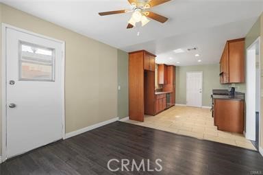 This beautiful well-maintained 4BR 1.75 BA is located in a nice and quiet neighborhood. Offering comfort, style, and functionality throughout. Spacious living room with fireplace, laminated wood and tile flooring, Newer windows, Kitchen with quartz counter tops, oak cabinets, recess lighting ,dishwasher. Central heat and A/C system, Ceiling fans in all bedrooms. Freshly painted outside. Two car garage with direct access to the kitchen. New garage door opener. Fenced back yard. Sorry, No pets.